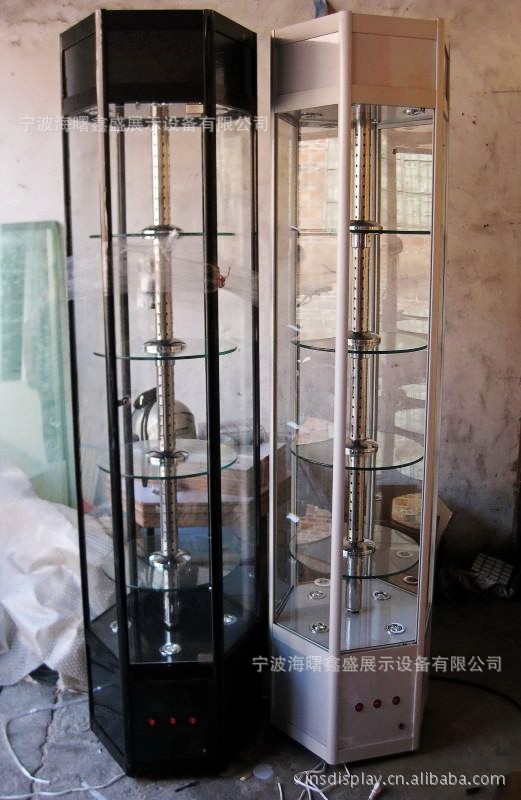 我司精品电动旋转展示架标准规格:23cm*23cm*180cm,工艺组装,表面经过细化处理光泽无凹凸形状,同时方便拆装,包装与运输,主材料采用铝合金材质,高密度板材,以及各种金属五金扣件组合而成,形成电自动旋转360度,同时配置8盏220V牛眼射灯,及中间旋转灯光,也可根据客户需求配置LED多彩灯光,外部接通电源插头,外置3个控制开关,可控制灯光和旋转,使用简单顺畅方便,底部配置万向轮可随时移动或搬运,外观优雅时尚,而且经久耐用,可以重复使用,不会走形或散架,实用性强,如企业,公司,工厂,商场,超市,酒店,商铺,广交会,展览会等等,此款展示架是您展现产品/商品的最佳展示道具!