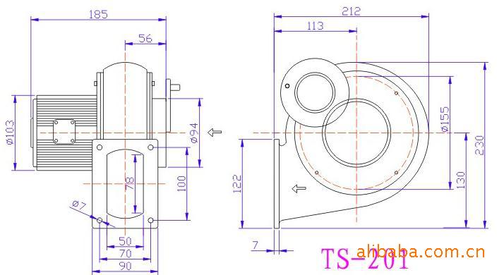 抽风机TS-201(75W)小型工业鼓风机一般用于塑胶材料片材的挤出、吹塑等相关机械设备上,采用铝合金重力压铸外壳,配合离心叶轮及优化参数设计,使各风压及风流量达到所配置的性能最优,以利使用寿命能完全配合所设计的8---10年!
