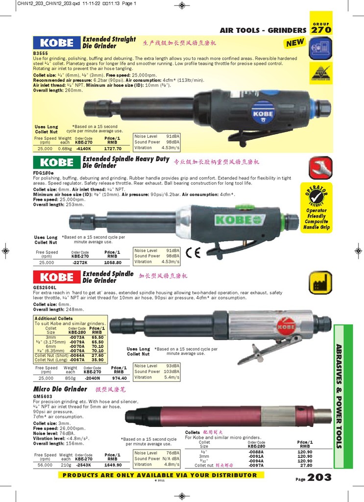 英国KOBE 加长型风动直磨机 克伦威尔工具