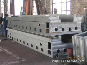 消失模铸造用于大型平台,异型工件,机床床身等大型模具.这样不但省去了昂贵的木型费用,而且便于操作,缩短了生产周期,提高了生产效率,具有尺寸精度高,加工余量小,表面质量好等优势.
