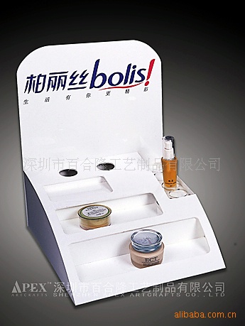名称:有机玻璃展示架,化妆品架(图) 材质:压克力 类别:化妆品展示架 摆挂形式:摆饰 制作工艺:其他 加工定制:是 品牌:apex 表面工艺:抛光 包装:纸盒包装 加印LOGO:可以