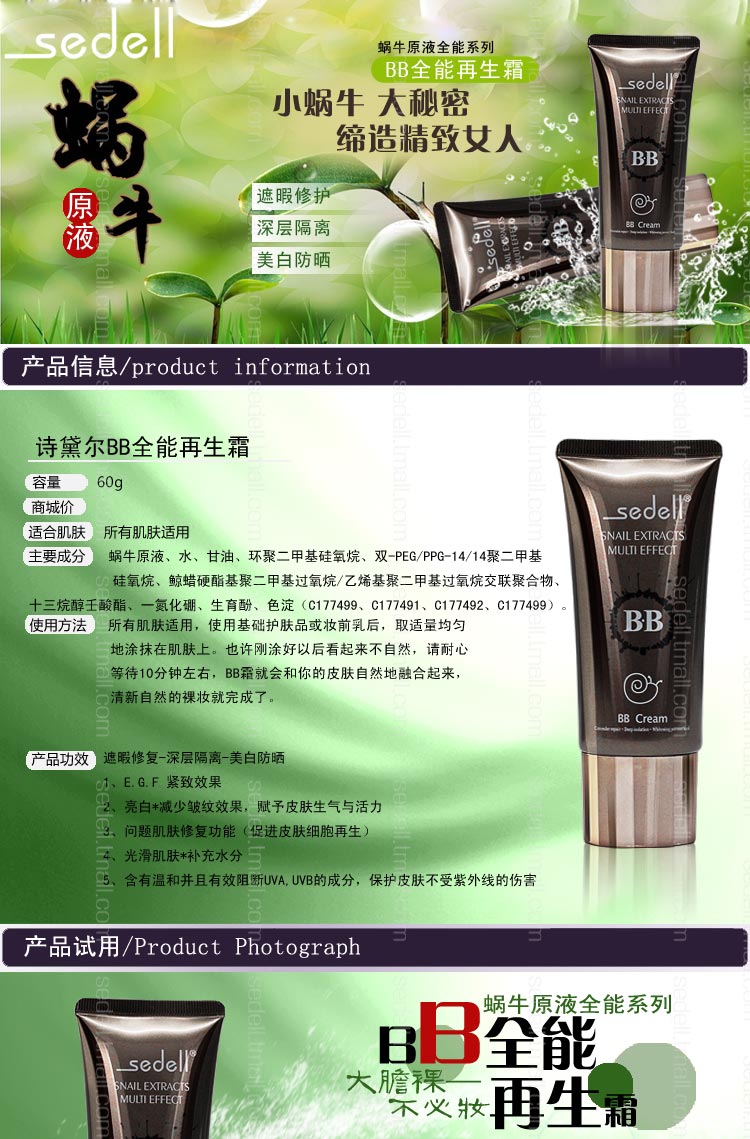 功效:保湿,补水,美白 | 品牌:诗黛尔 | 产品名称:BB全能再生霜 |
