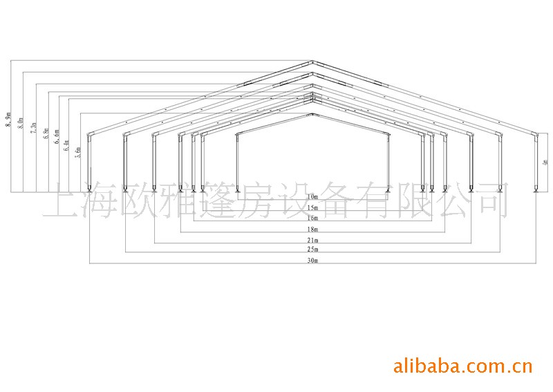 30/400 边高:4.0米 顶高:8.9米 跨度:30米 最小长度:5米