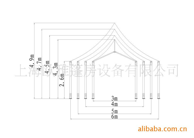 6*6 边高:2.6米 顶高:4.9米 长、宽:6米