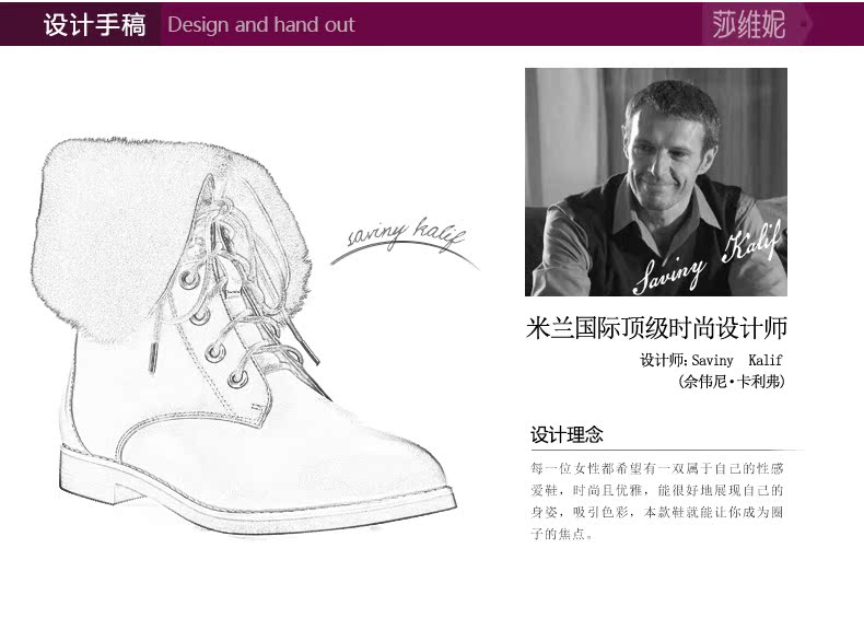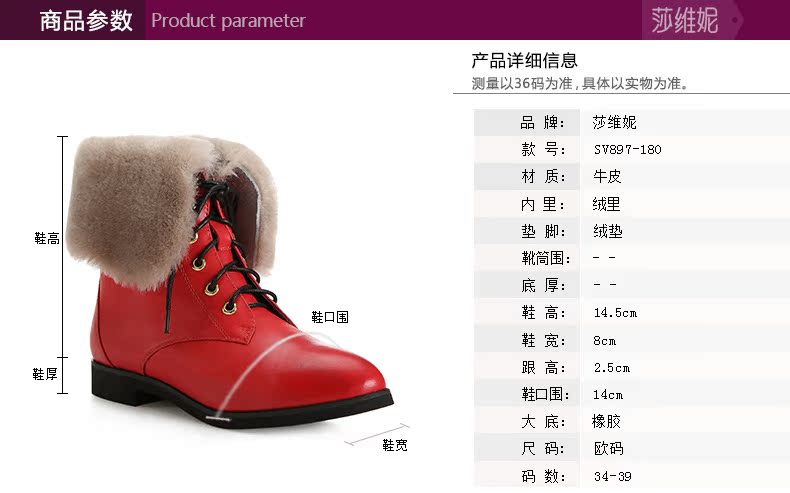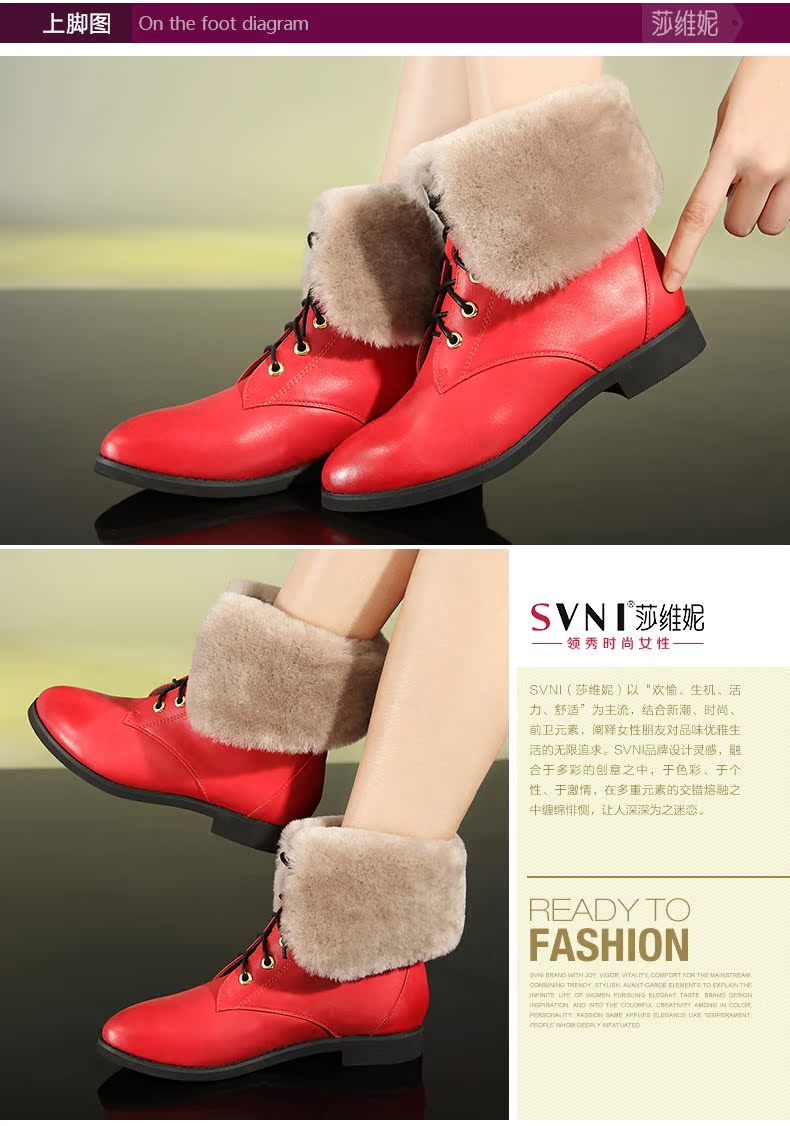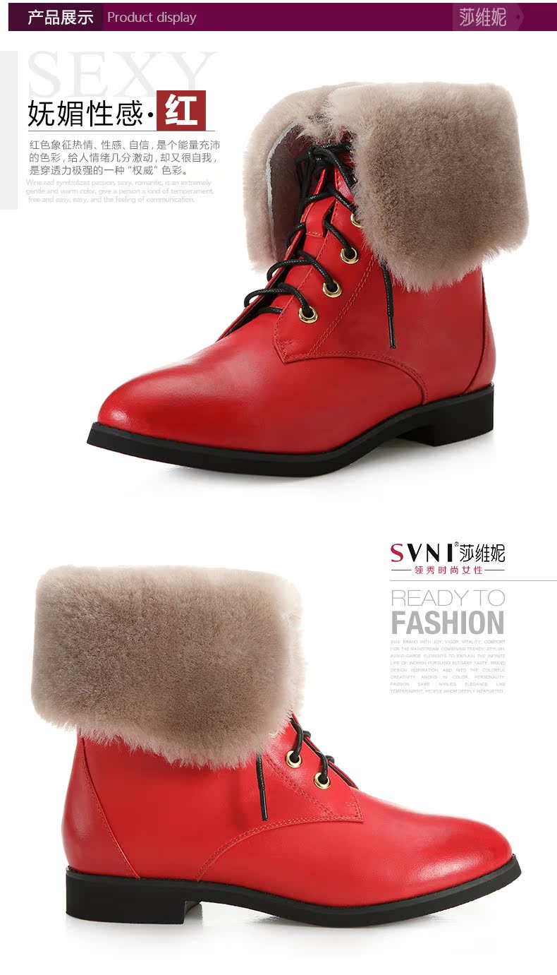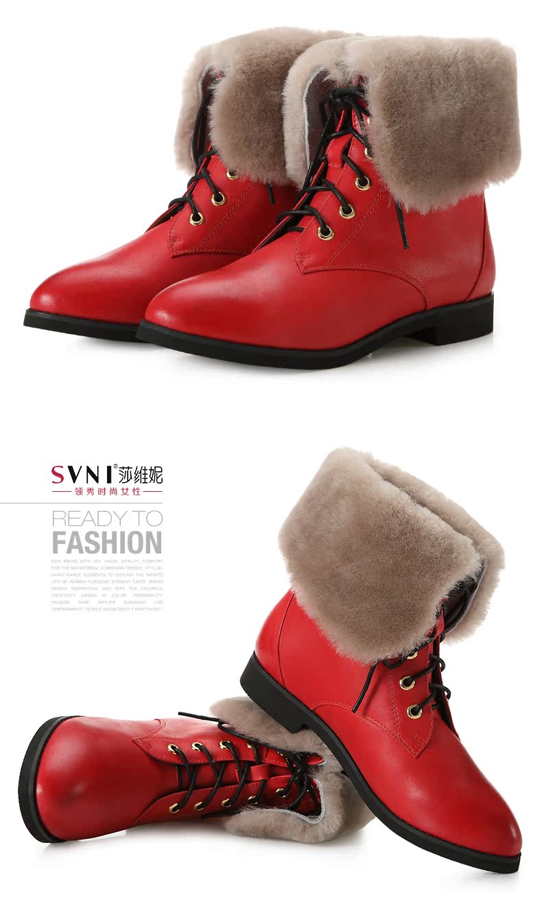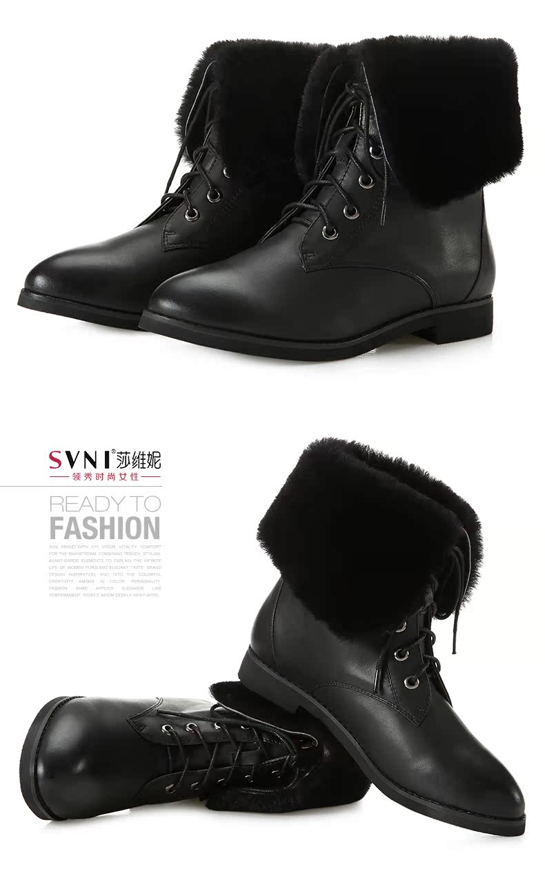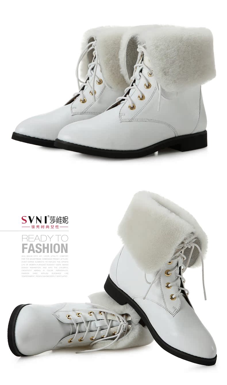 svni/莎维妮 2013秋冬新款保暖靴 甜美休闲中跟真皮靴子 897-132