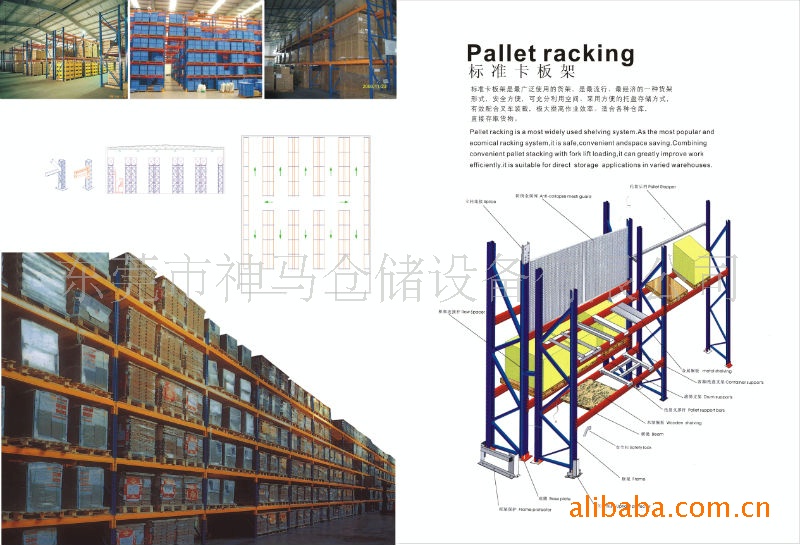 托盘式货架是以托盘单元货物的方式来设计并保管货物的货架 一般采用叉车等装卸设备作业。