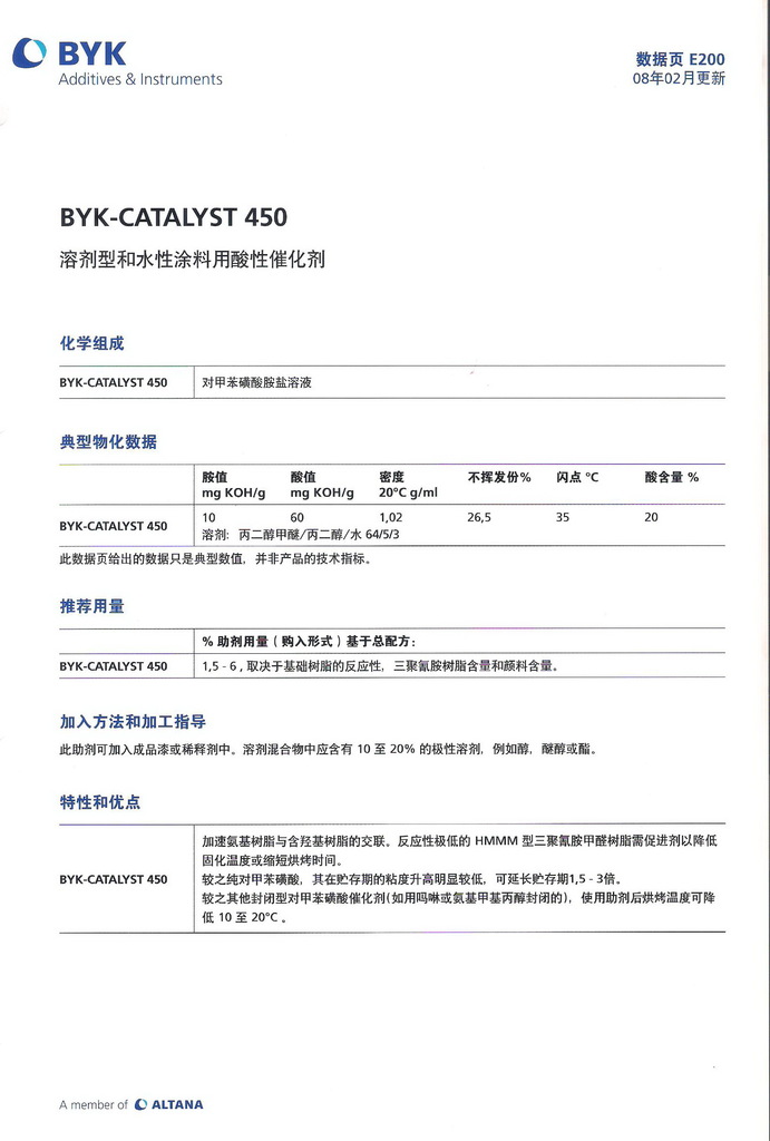 德国毕克BYK-450 酸性催化剂