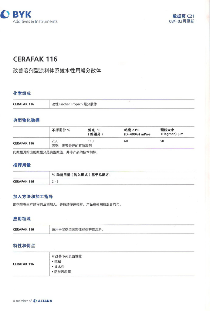 蜡分散体 德国毕克 BYK-CERAFAK-116 蜡分散体