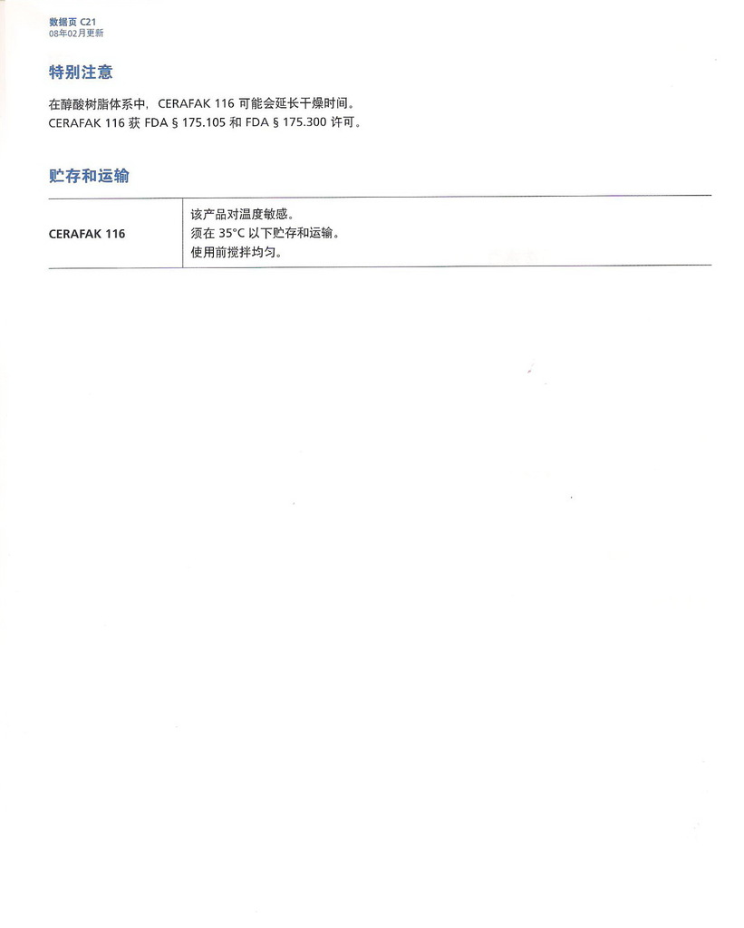 | 3 | 木器漆表面防护用消光性蜡分散液 | Ceramat 237 | Ceramat 248 |