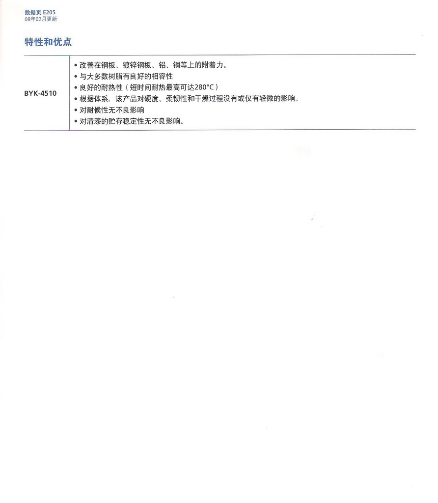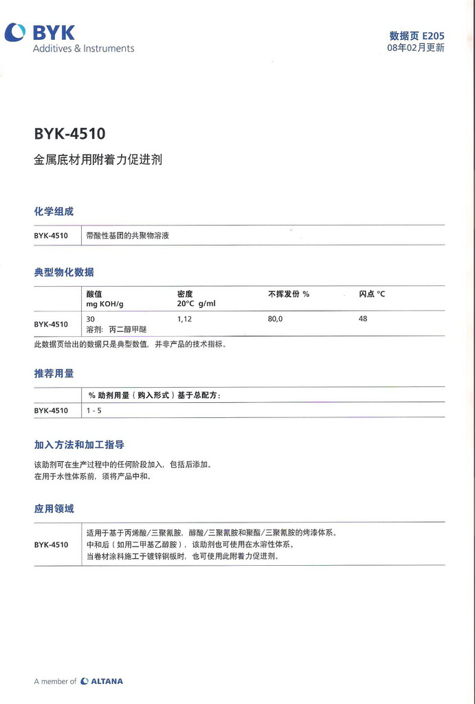当卷材涂料施工于镀锌钢板时,也可使用此附着力促进剂。