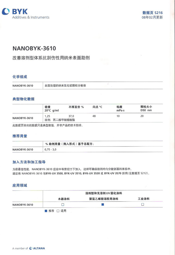 流平剂 德国毕克 BYK-3610 增硬耐磨剂 纳米表面助剂 流平剂
