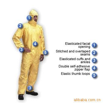 TYCHEM®C已通过血液和病毒代用品的穿透测试,证明TYCHEM®C可用于防护体液、血液和血液中的病原体。TYCHEM®F的白色内表面防静电,如需防止静电积聚,就需要接地。TYCHEM®C不含有任何卤化复合物,可以焚烧或埋于专门的地方,污染的防护服应该象污染的废物一样处理,请参照国家有关法规,未污染的防护服可以回收利用。