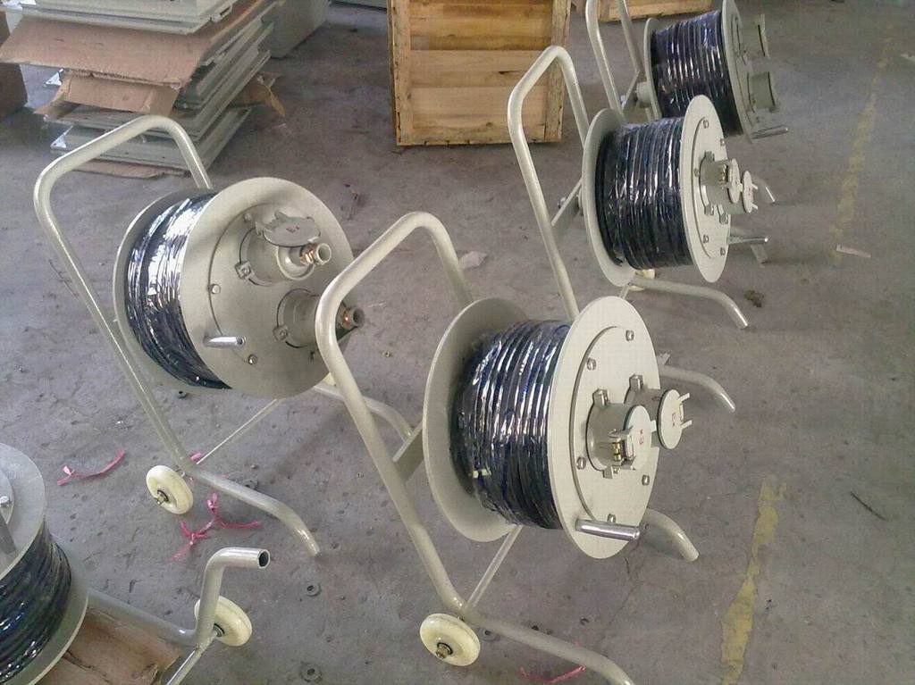 1. 本产品外壳采用铝合金压铸或钢板焊接成型,表面经高速抛丸后粉末静电喷塑,外形美观,电缆盘转动灵活,移动时有托架及行走轮,移动方便;