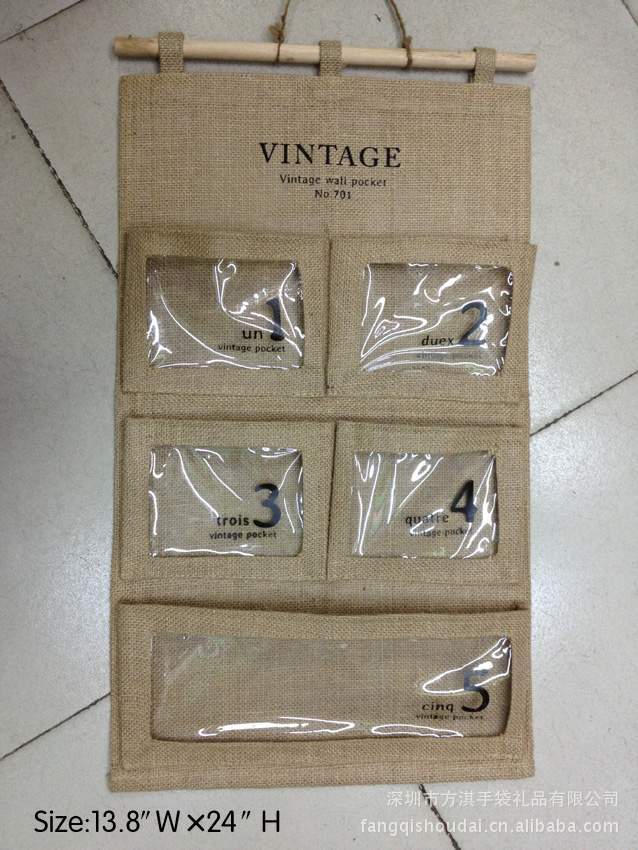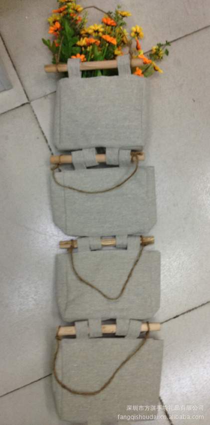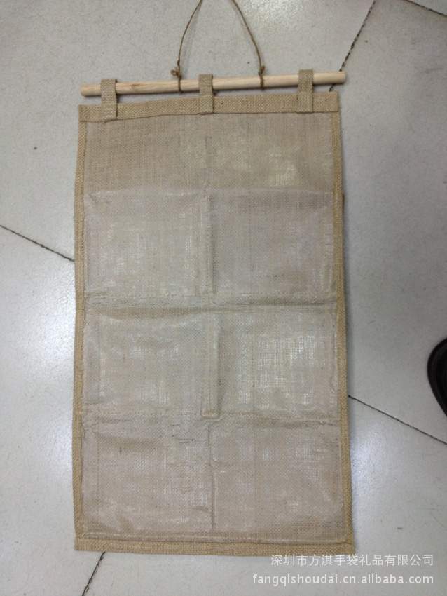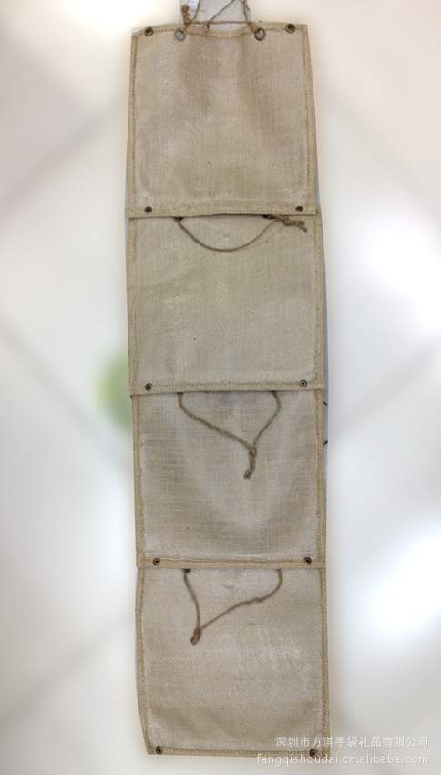深圳方淇厂家热卖创意多功能挂式黄麻编织布收纳袋