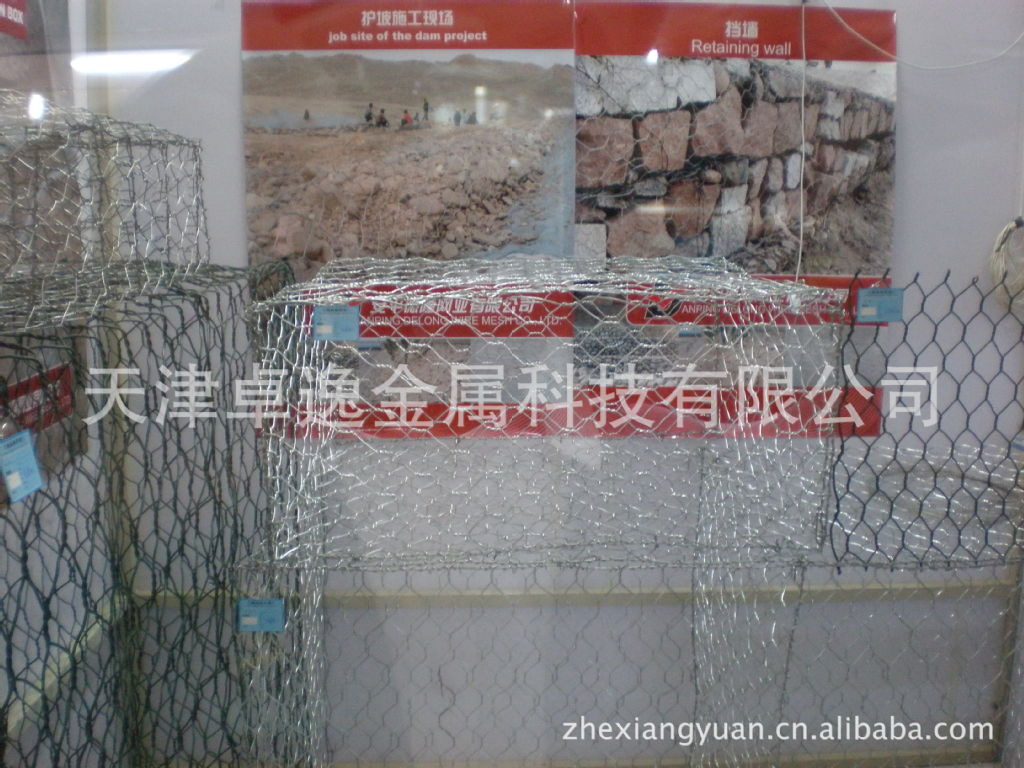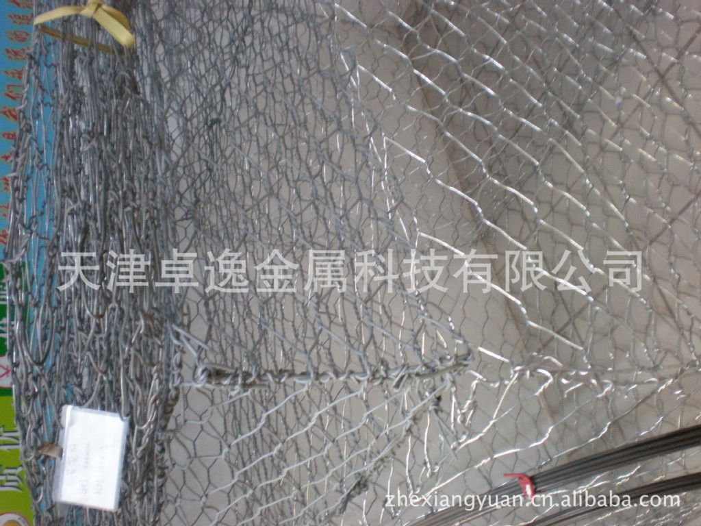 (7)重型六角网是采用优质低碳钢丝镀锌大丝号编织,钢丝的抗拉强度不少于38kg/m2,钢丝的直径可达 2.0mm-3.2mm,钢丝表面通常还采用热镀锌保护,镀锌保护层的厚度可根据客户的要求制做,镀锌量最大可达到300g/m2。