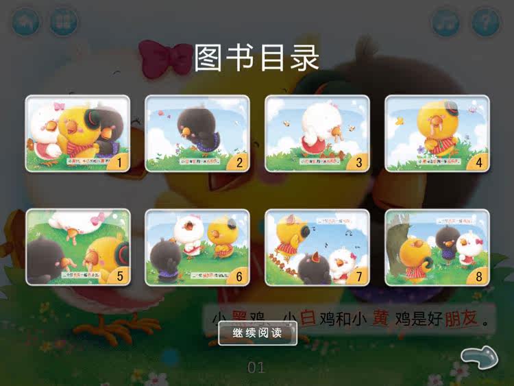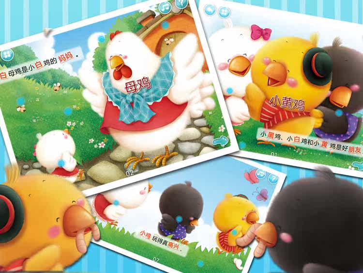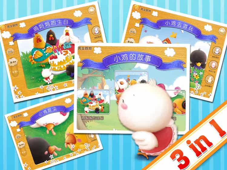 《小鸡的故事3 in 1》总共包括3个识字故事,分别为: