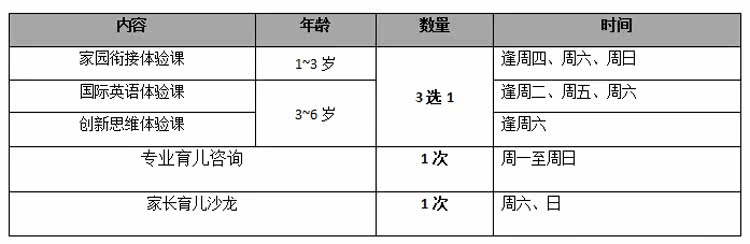 市场价698元的黄金玩学中心特色早教课程,仅售19.9元!家园衔接体验课/国际英语体验课/创新思维体验课(3选1)+专业育儿咨询(1次)+家长育儿沙龙(1次)!没有人比我们更懂1~6岁的宝宝!让宝宝学得无意,学得随意,学得乐意!