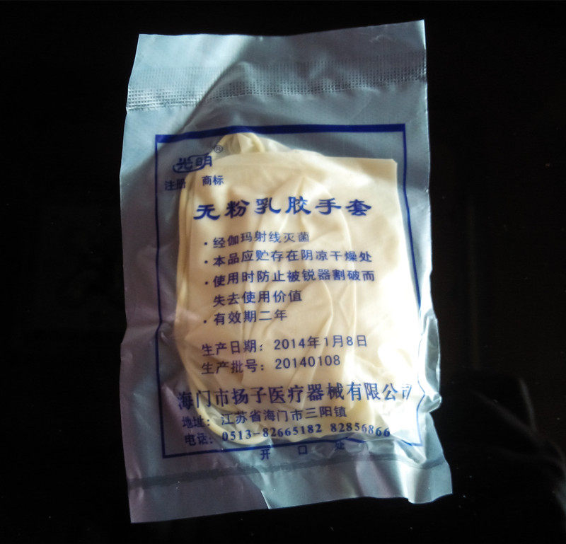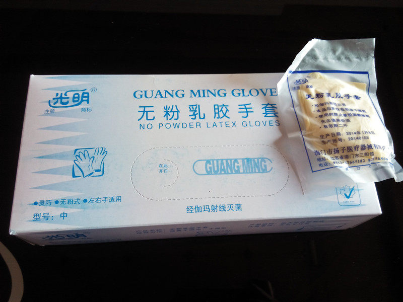 1,光明牌,一次性乳胶手套(无粉)。