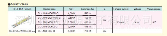 西铁城采用日亚芯片,多晶结构设计,COB封装,这种设计光效高散热快且不会有重影。主导产品2-6.7W、4-10.7W、6-16W、8-21.4W、11-26.7W、13-32.1W、17-42.8W、26-62.4W、39-96.2W、59-114.3W、82-200W之大功率COB光源,正白色、暖色系列,针对欧、美、日等中高端市场客户需求,不断推陈出新,立志在LED Lighting市场有一席之地。 西铁城首创3W、6W长条形LED,3W长条形单颗5000k可到380Lm,6W单颗720Lm;方形:4W LED单颗455Lm,6W LED单颗625Lm,13W可达1400Lm。深得各概念设计大师的喜爱。光效高,光衰小,长寿命等特性,现正大规模应用于室外(路灯等),室内(照明 射灯等),欢迎咨询了解。www.cnlg-power.com