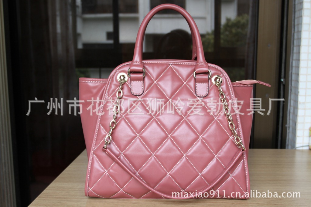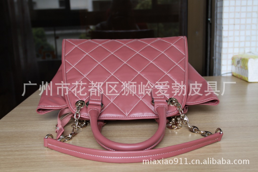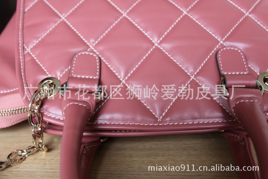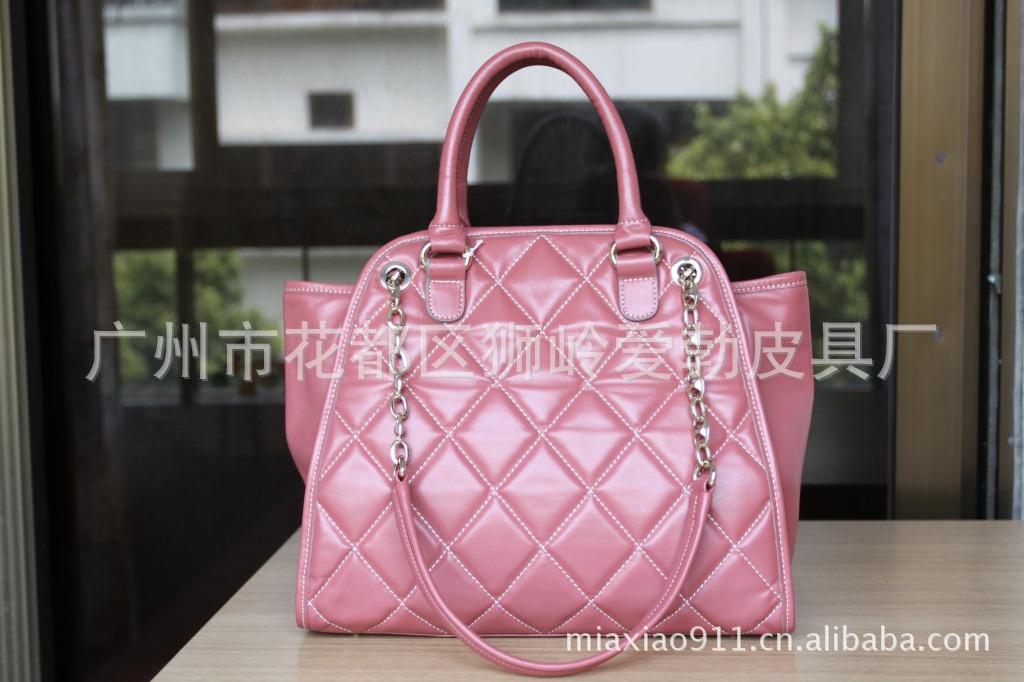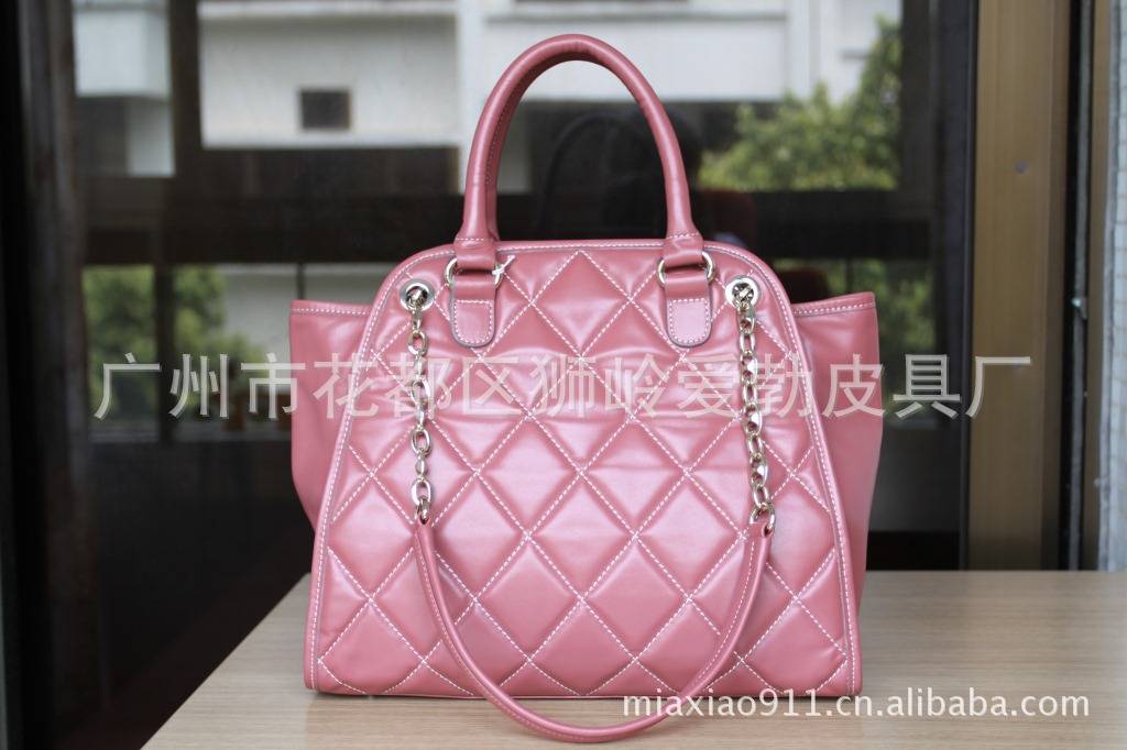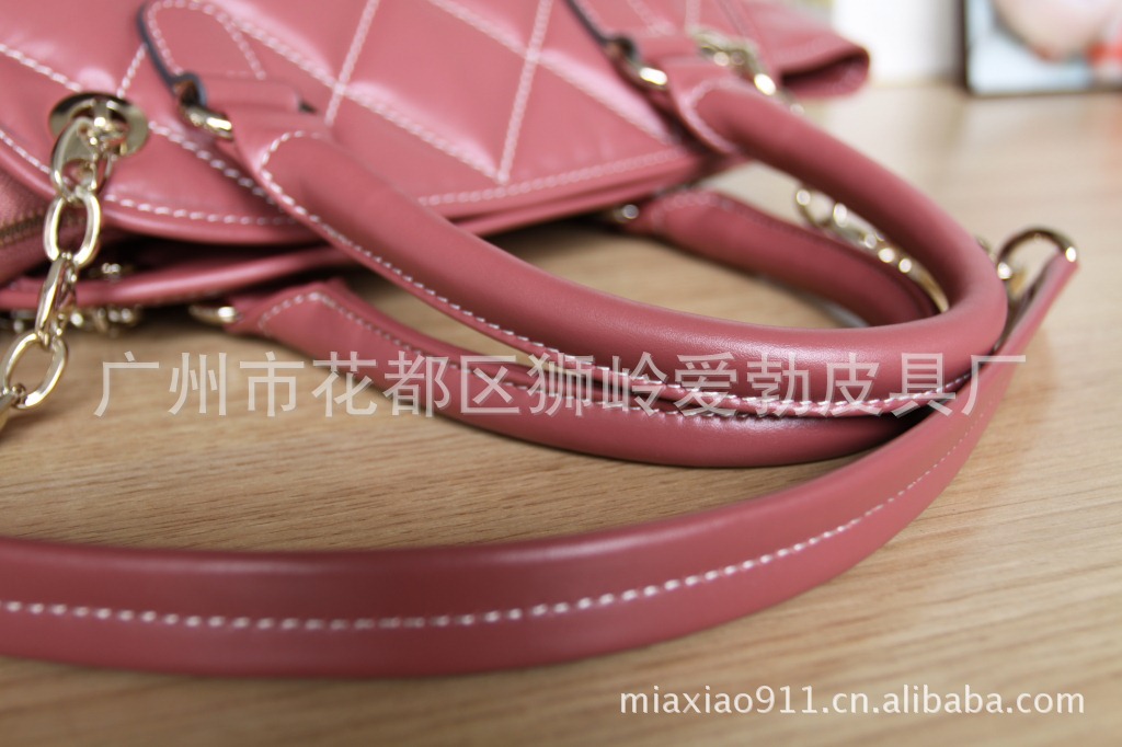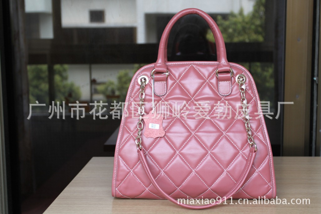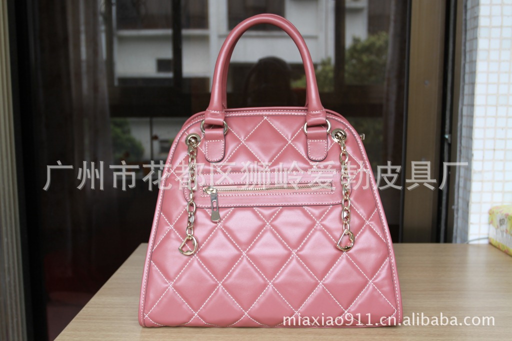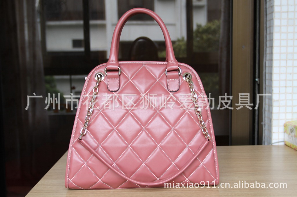 手工车线菱格 粉色淑女高档头层真牛皮单肩包 广州女包狮岭女包