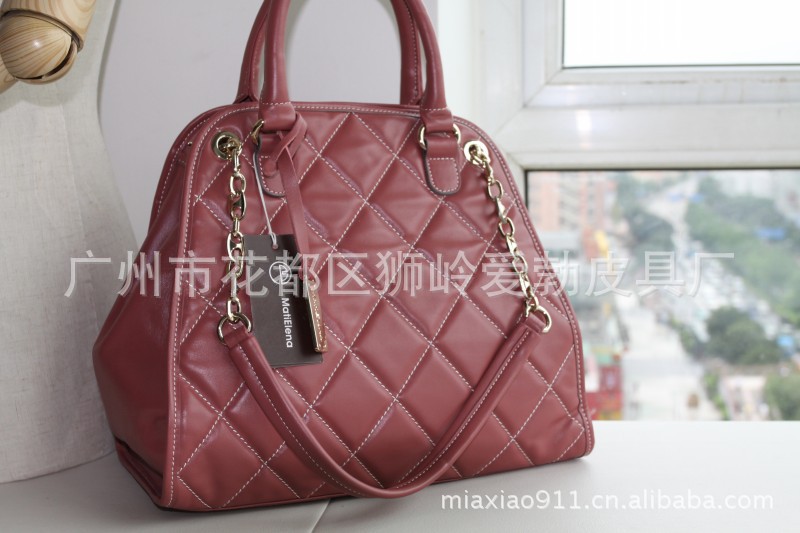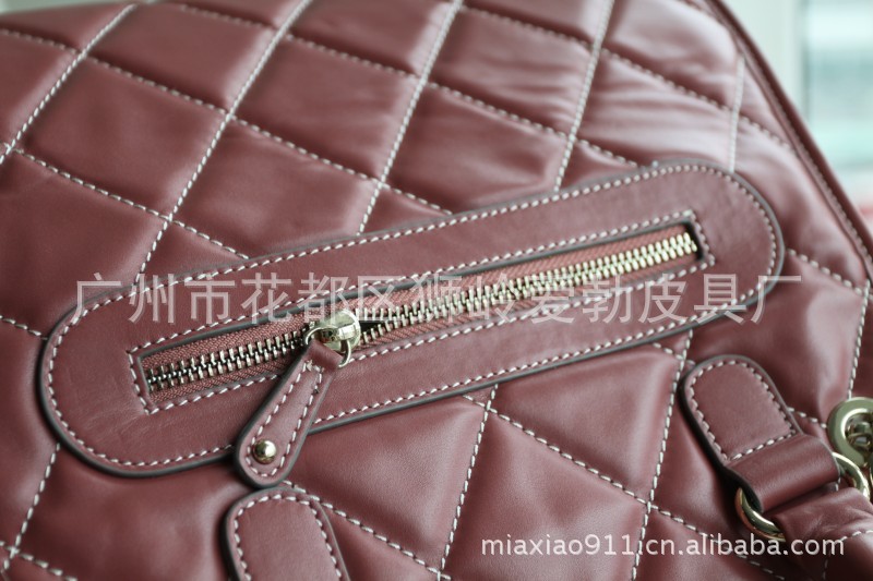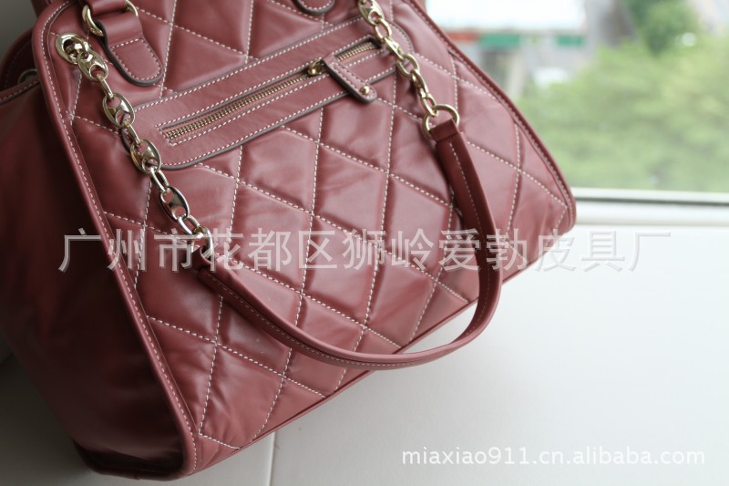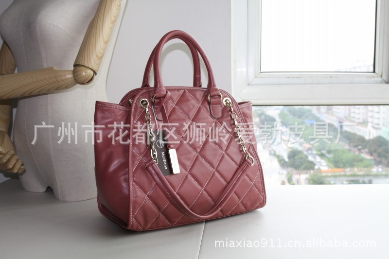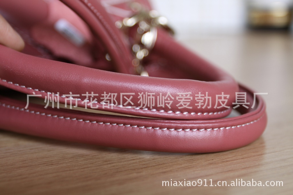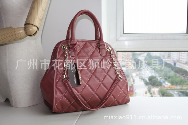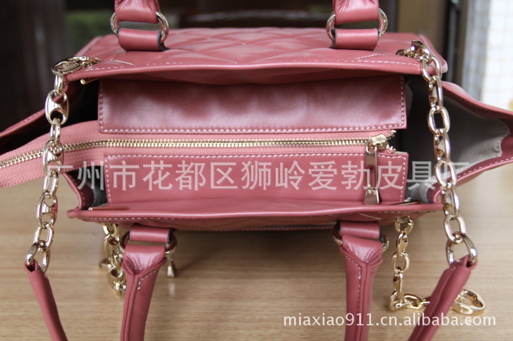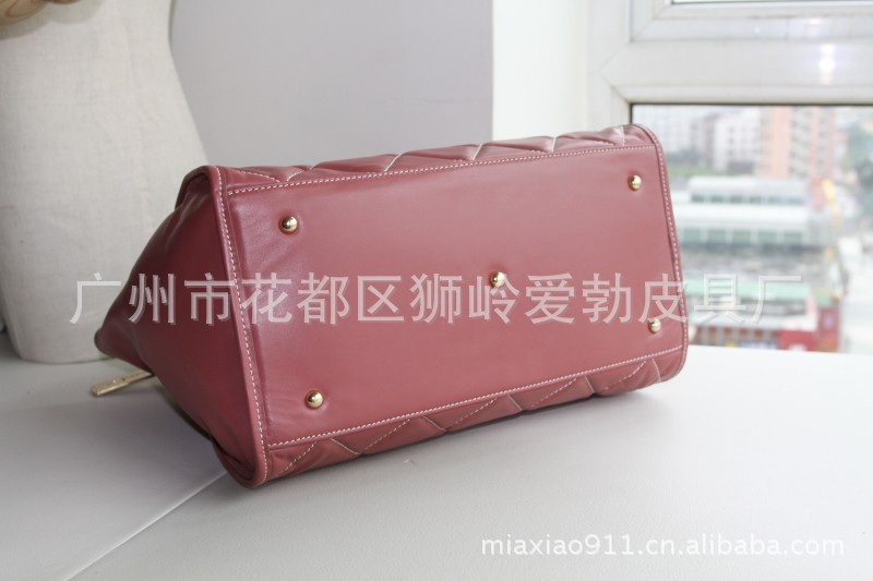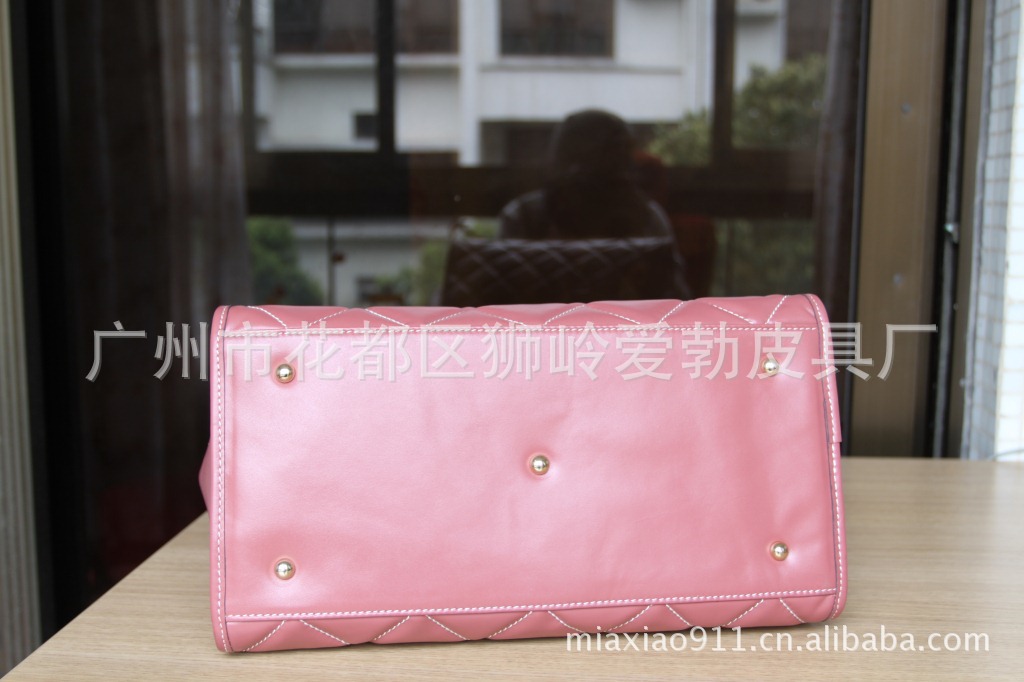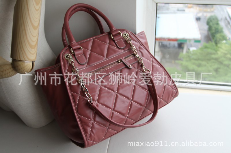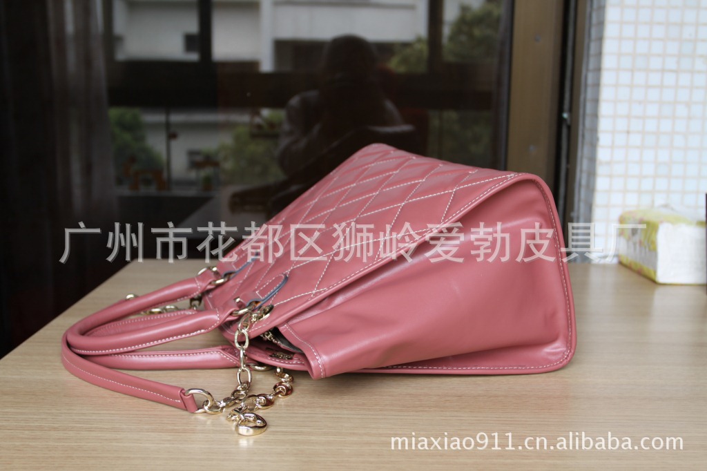 手工车线菱格 粉色淑女高档头层真牛皮单肩包 广州女包狮岭女包