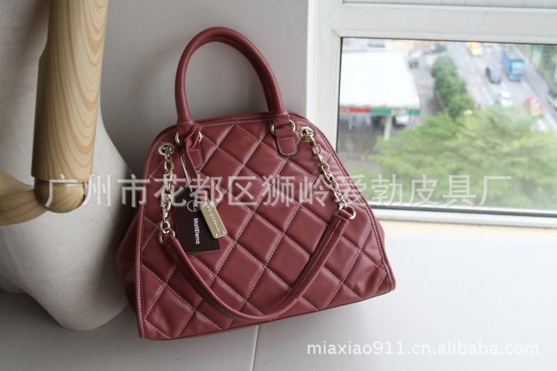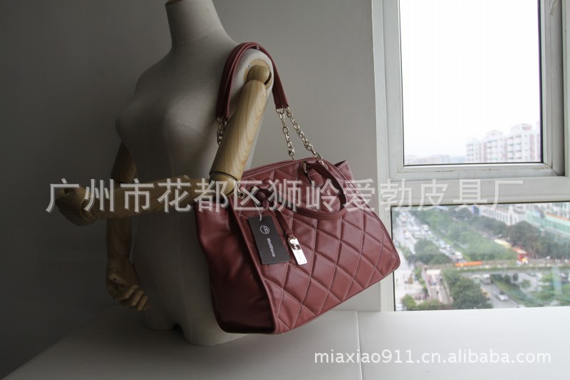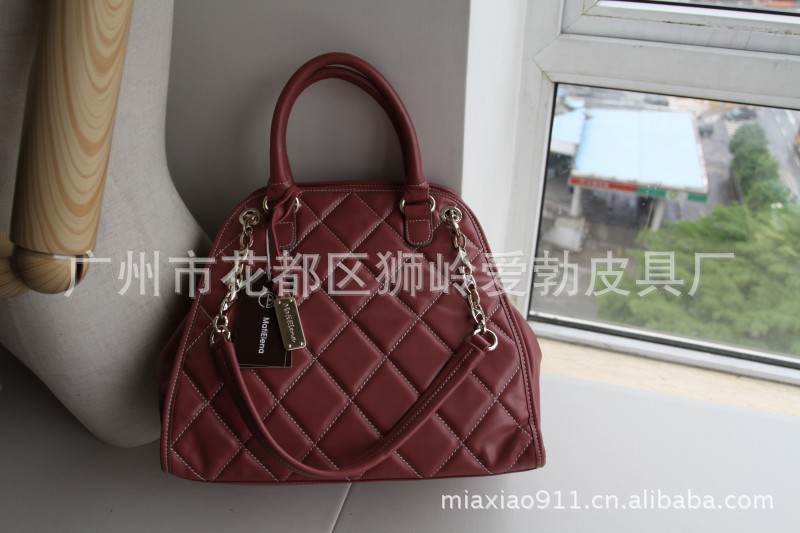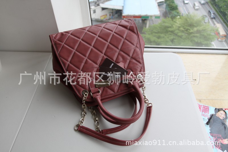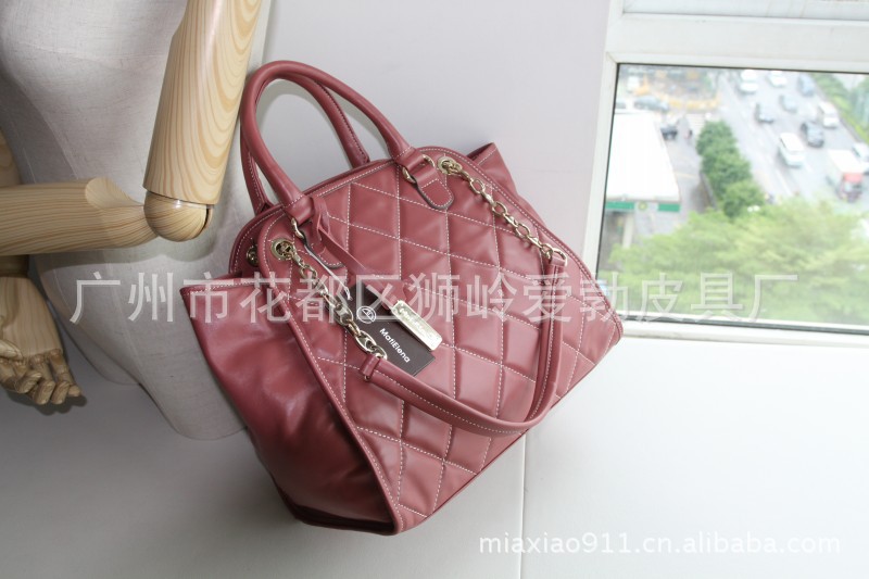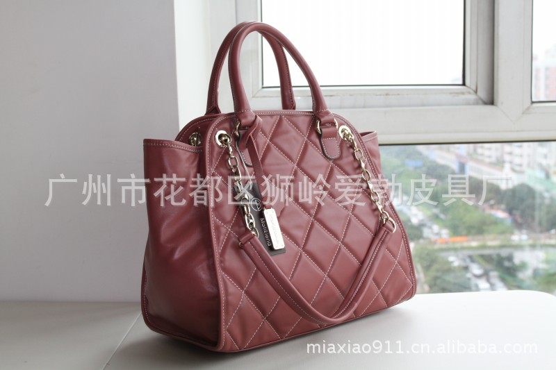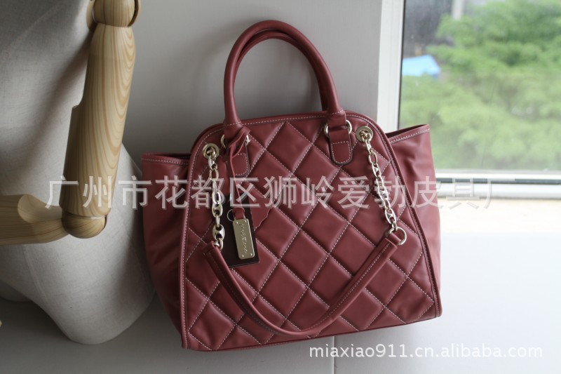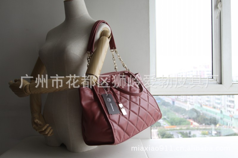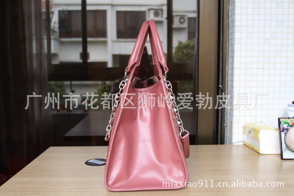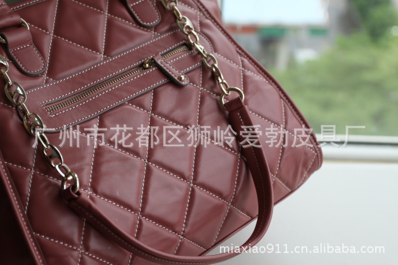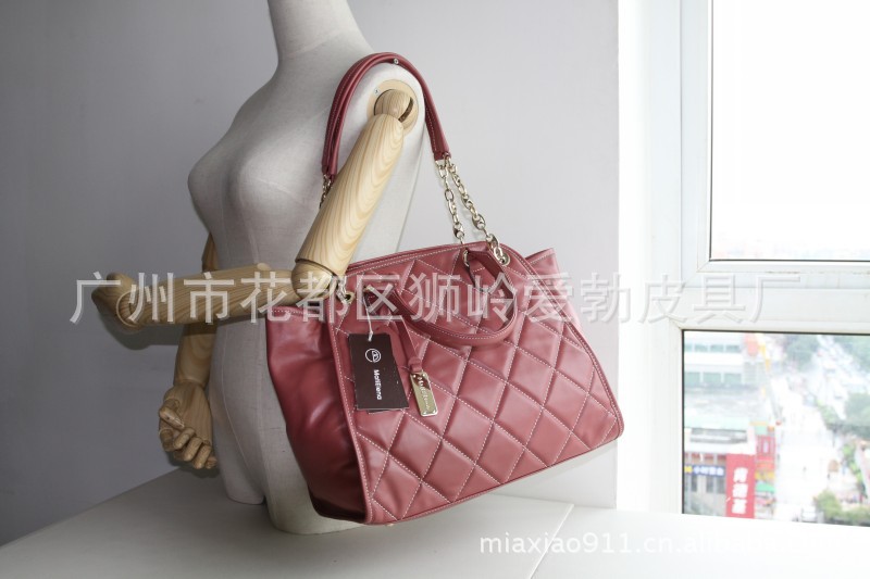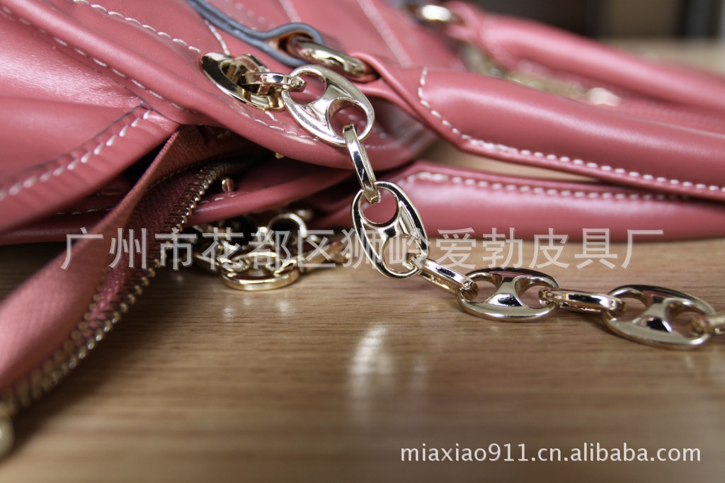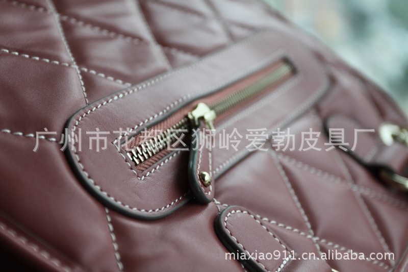 手工车线菱格 粉色淑女高档头层真牛皮单肩包 广州女包狮岭女包