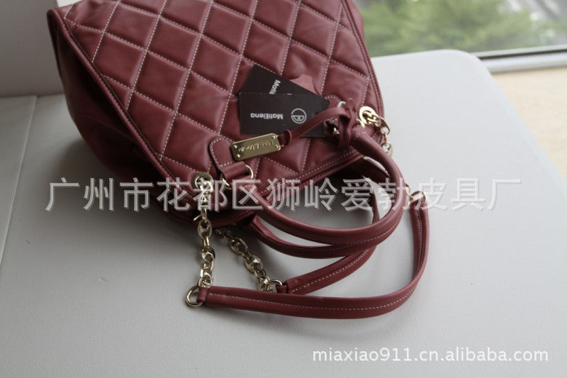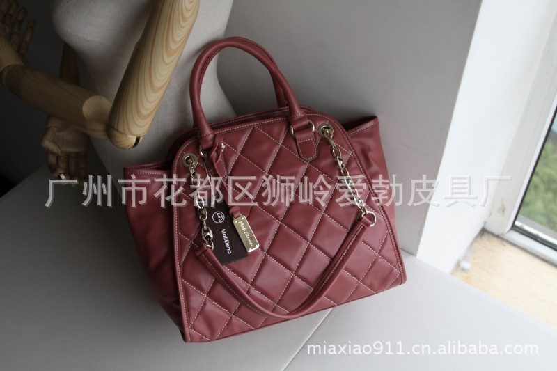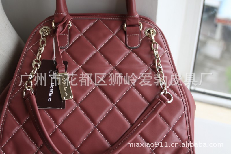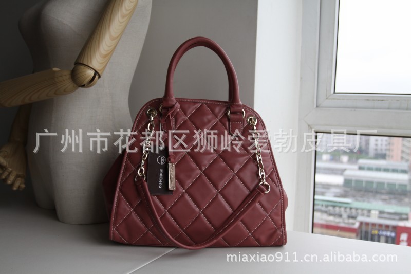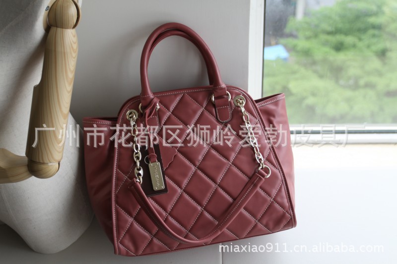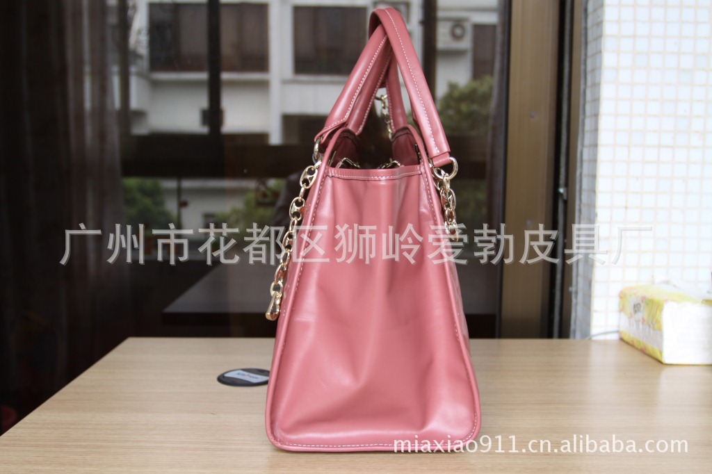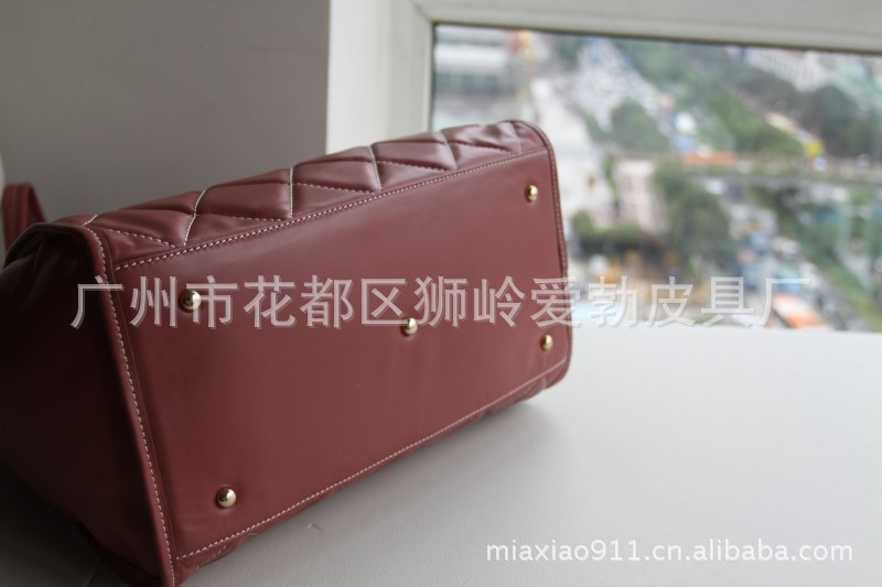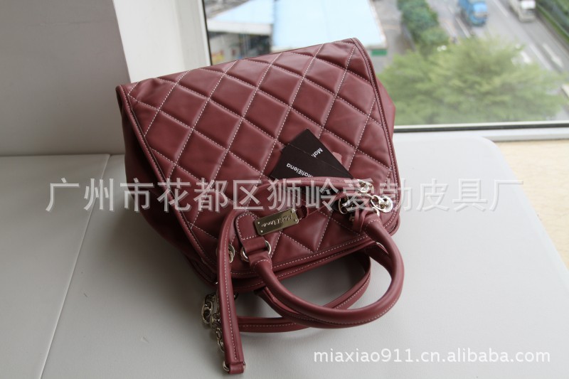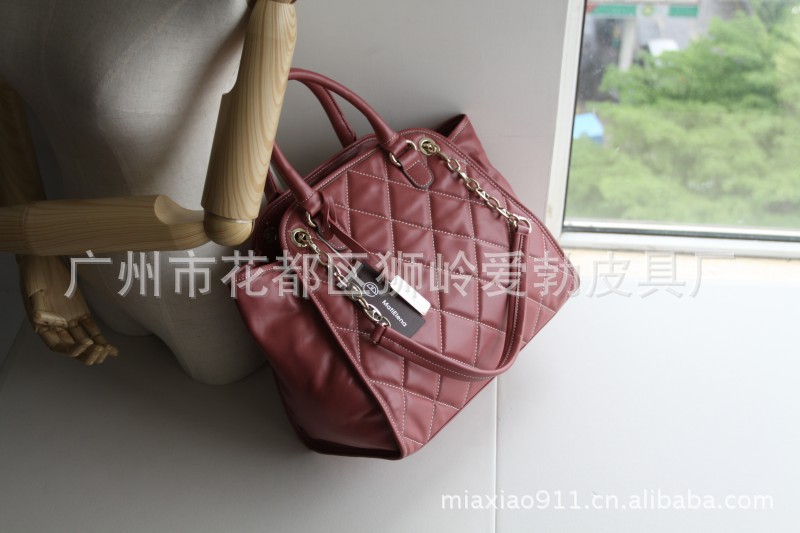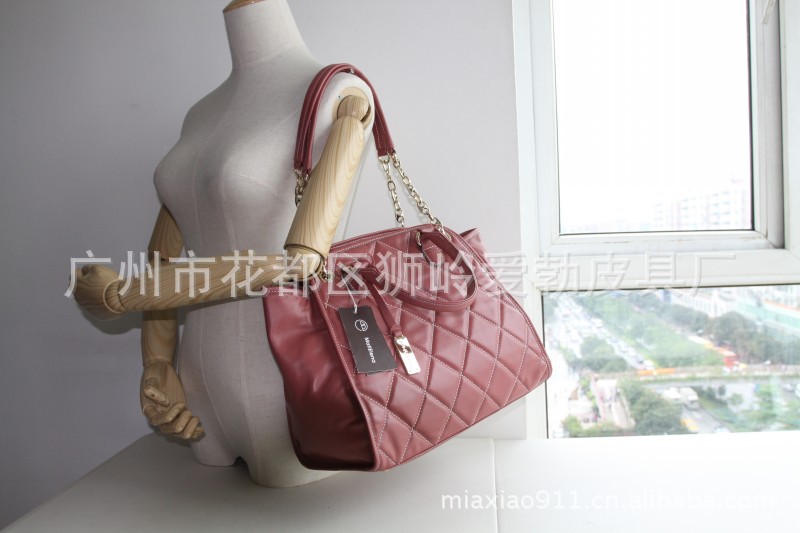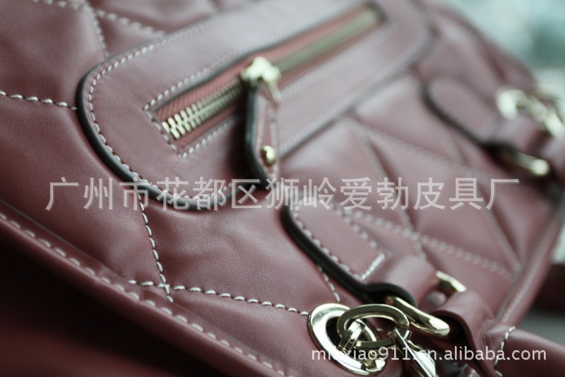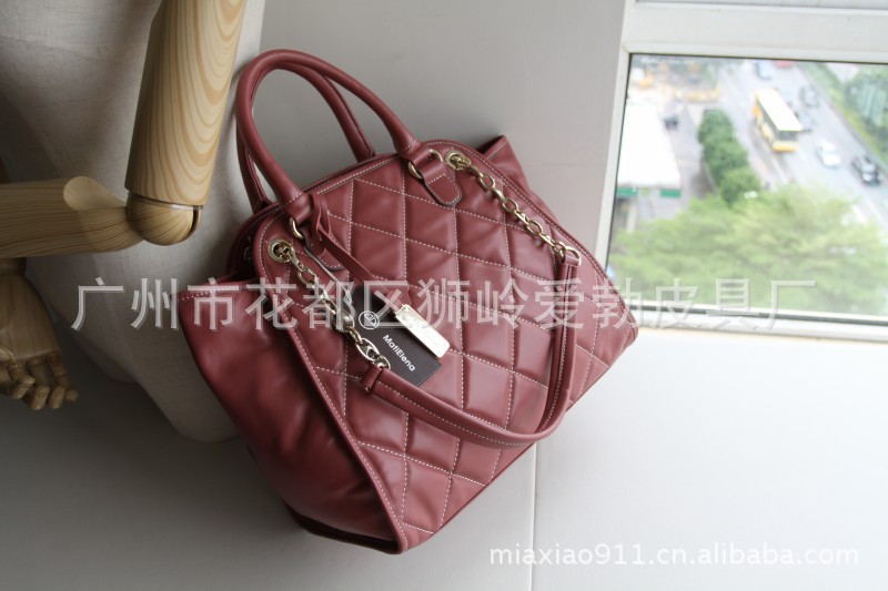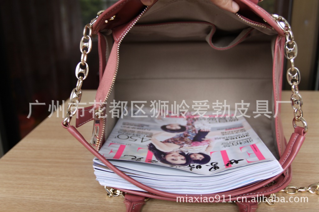 手工车线菱格 粉色淑女高档头层真牛皮单肩包 广州女包狮岭女包
