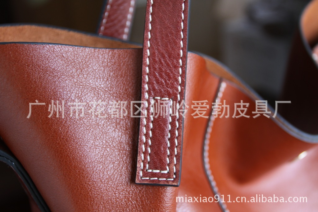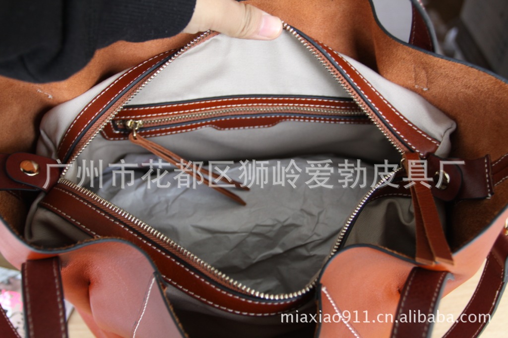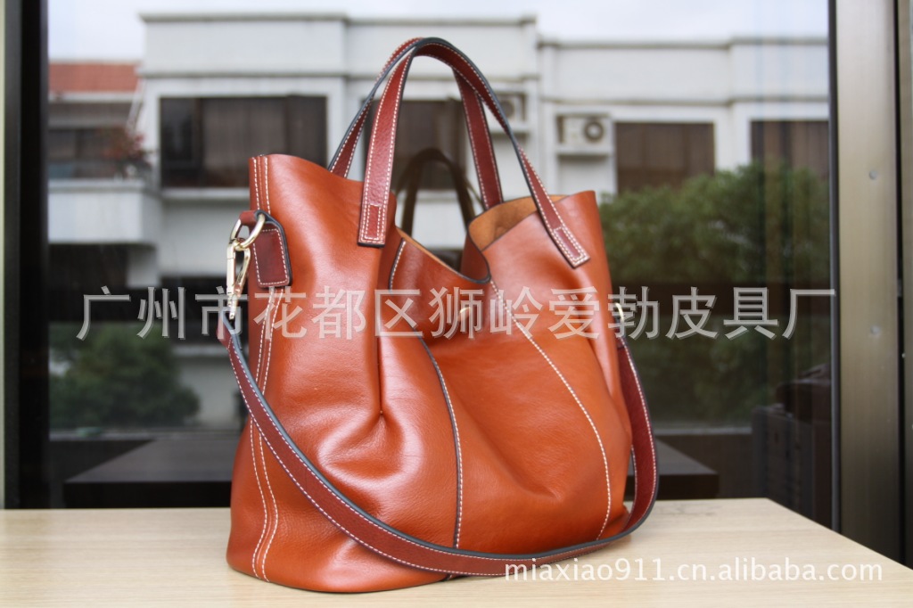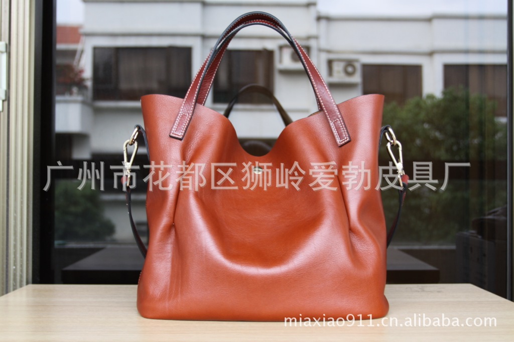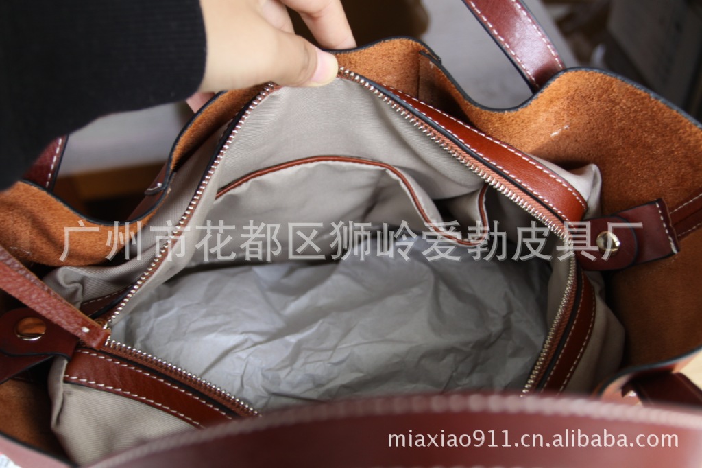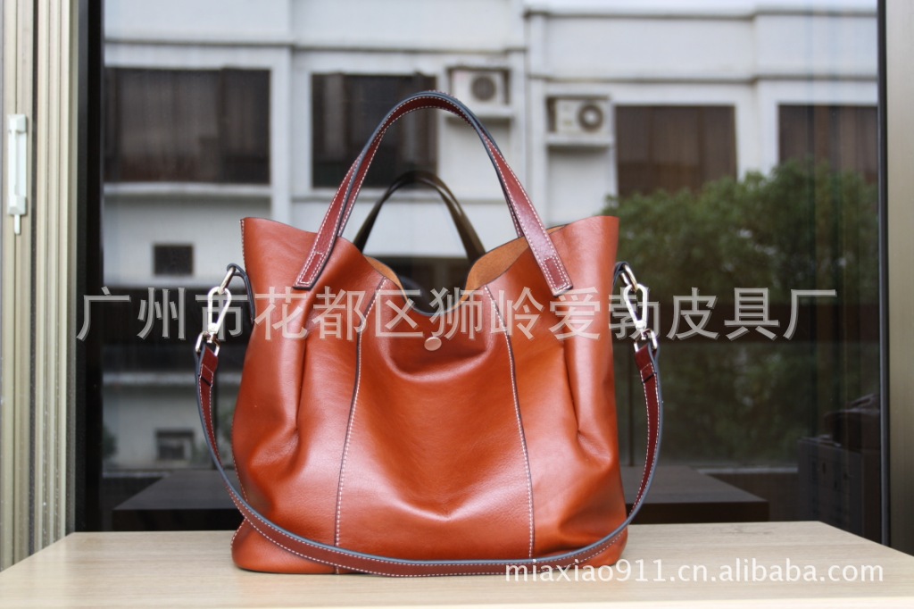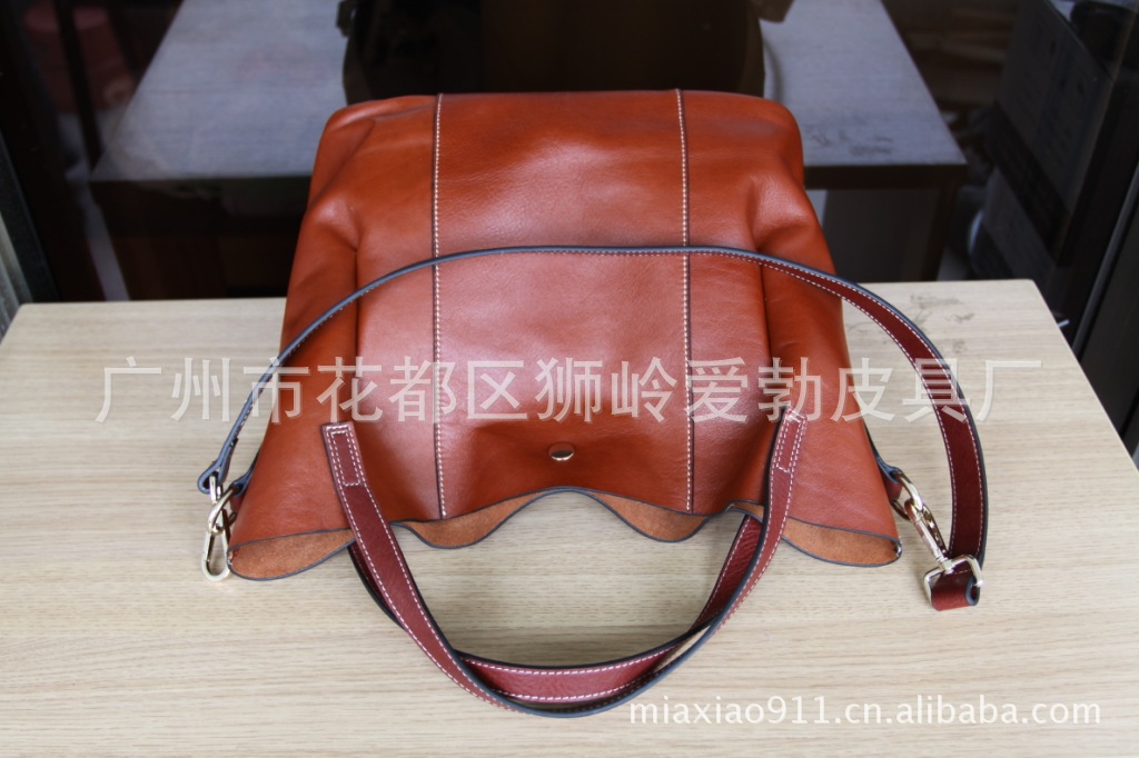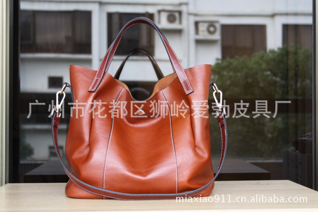 新爆款单肩手提包油蜡皮头层牛皮高档真皮广州皮具厂混批加工