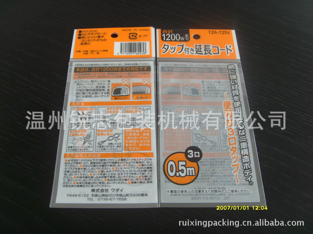 本机适用于:OPP、CPP、PP、PE、POF、PVC等各种可热合材料;可生产市场所需的服装袋、袜子袋、毛巾袋、妆品袋、文具袋、面包袋等等塑料边锋包装袋。