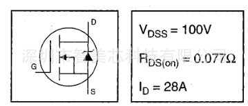 是一个大电流(30A)、较高耐压(100V)、低导通电阻(0.077Ω)的N沟道场效应管