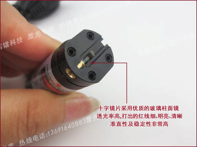 该款产品为我司最新研发,采用原装进口玻璃柱面镜和激光二极管,室内正常环境打出的十字线最长可达到4米左右(十字的横竖线分别为4米长);红线细且均匀,准直性及稳定性非常高,安装高度0.5-3m都可以使用。