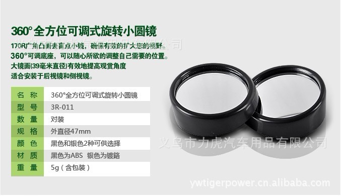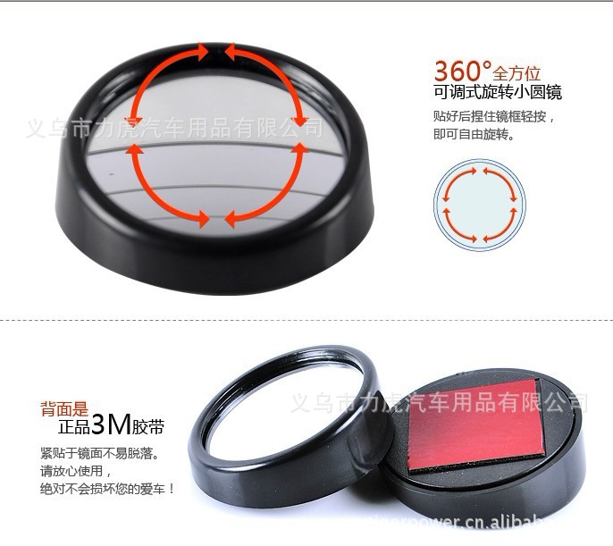 汽车盲点镜 倒车后视镜 可调角度小圆镜 3R-011 力虎