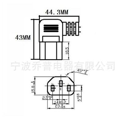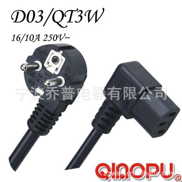生产公司:宁波乔普电器有限公司 产品型号:QT3-W 产品名称:两极带接地不可拆线插头 额定电流:10A 额定电压:250V 插头配线:PVC电线执行标准 VDE 0281 橡胶线执行标准 VDE 0282 标准可配电线: H05VV-F 3G0.75mm2 H05VV-F 3G1.0mm2 插头 执行标准:DIN EN 60320-1(VDE 0625-1):2008-05;EN 60320-1:2001+A1:2007