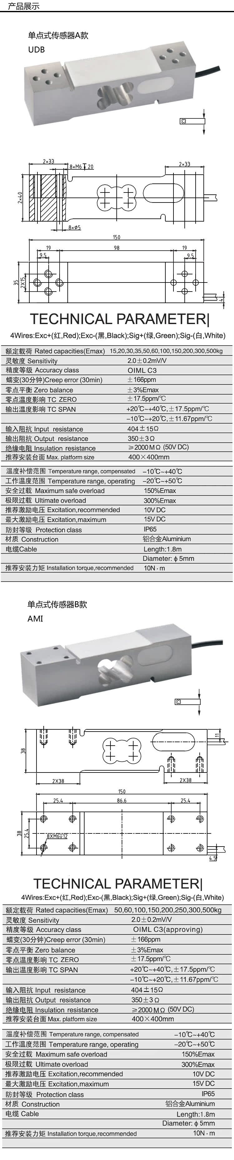 单点式铝合金称重台秤传感器测力传感40kg50kg200kg300kg500kg