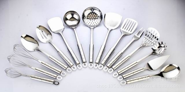 配套系列:铲、勺、12漏、煎铲、漏铲、短饭匙、长饭匙、长漏匙、肉叉、粉扒、蛋糕匙