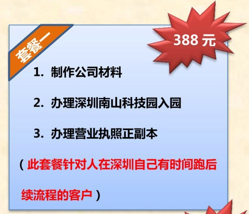 388元注册公司的套餐是中企信星独家推出的针对有时间自己跑后续流程客户的套餐。