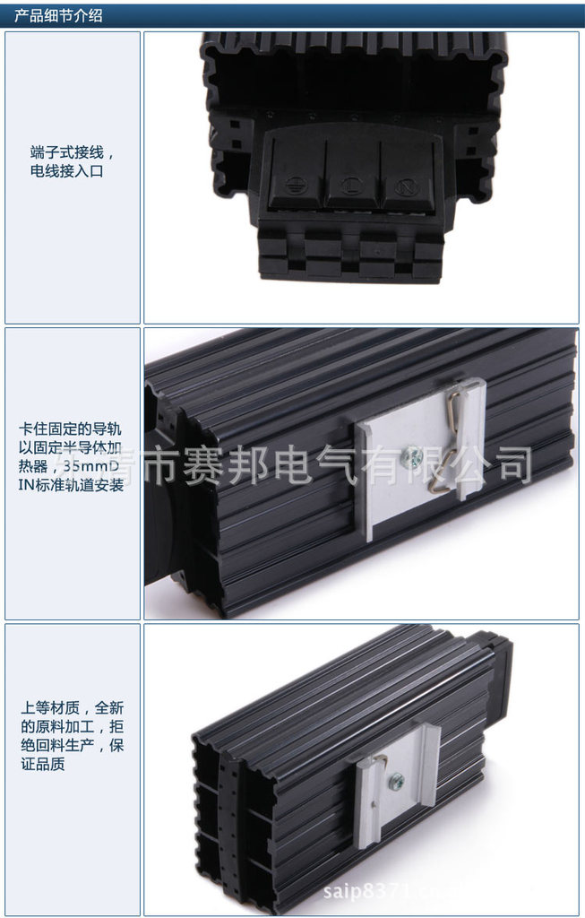 HG 140 15W 30W 45W 50W 60W 75W 100W 150W 1.适用于高压开关柜,端子箱,配电柜等升温或除湿去凝露; 2.功率大,体积小,抗凝露效果好; 3.安装方式:导轨式DIN35mm; 4.加热材质:PTC. 5、端子式接线 6、高效加热 7、电压范围宽 8、温度限定 9、节能 10、导轨固定 11、快速安装 电热器使用于开关箱当中预防产生凝露,防止温度降至零下或降至最低设定值。 |