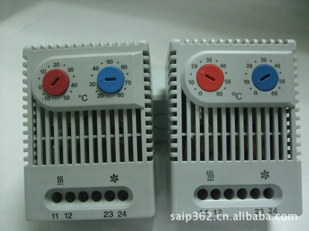 温控器NC(联络断路器,通常关闭)控制加热器。 温控器NO(联系制造商,通常是开放)控制调节器风扇和换热器或开关信号装置,温度超过限额启动。
