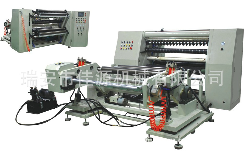 本机适用于各种超大型卷材的分切,如20g/㎡-300g/㎡玻璃纸、票据纸、双面胶、PVC、OPP、PET等卷材的分切、复卷等,该机采用微机控制,磁粉离合式张力控制,中心卷取方式。主机采用变频调速。自动计米,报警等功能。收卷采用A、B轴(气胀式)。放卷采用光电自动纠编修正系统,使不规则材料能正常切分或(气敏油压式对边系统)。圆刀纵切(或平刀结构)废边自动排放装置,手动上料(或气动自动上料)放卷轴配锥套式气胀轴(3’,6’)。