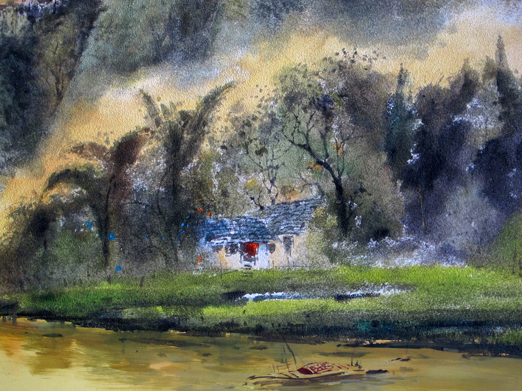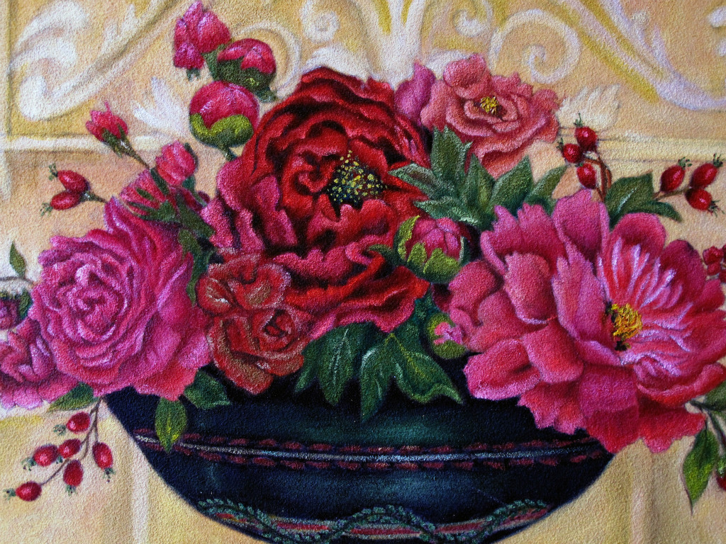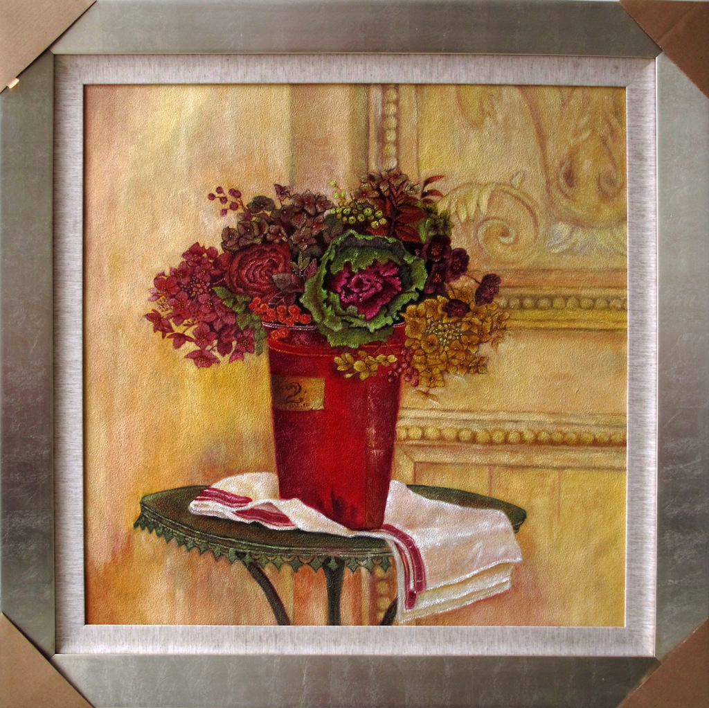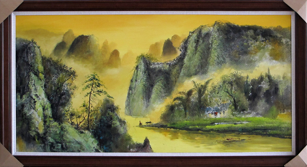 彩韵油画采用精心筛选的石英砂混合油画底料做底,由技艺精湛的油画师用油画颜料精心绘制完成,其特点是既可用大写意的手法表现出中国画般的水墨韵味,又可精雕细刻表现如工笔画般的丰富细腻,很好地融合了油画的厚重、水墨画的神韵等特点,完成后的作品表面呈现石英砂的自然肌理,无论远观抑或细品均可感受到画作给人带来的视觉享受。