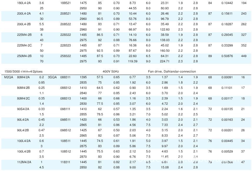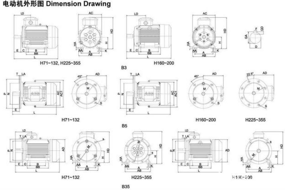 由于电机有较好的起动性能,因此也适用于某些对起动转矩有较高的要求的机械,如压缩机等。 功率范围:0.18-315KW 机座中心高:71-355L。