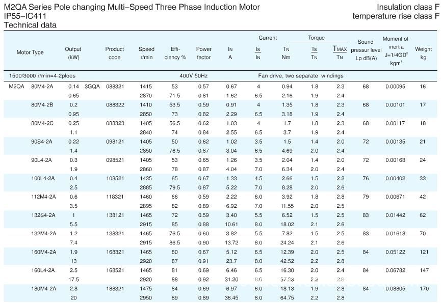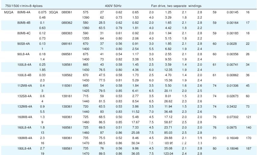 QA/M2QA系列电机是一般用途的全封闭自扇冷鼠笼型三相异步电机,它是统一设计的最新系列。