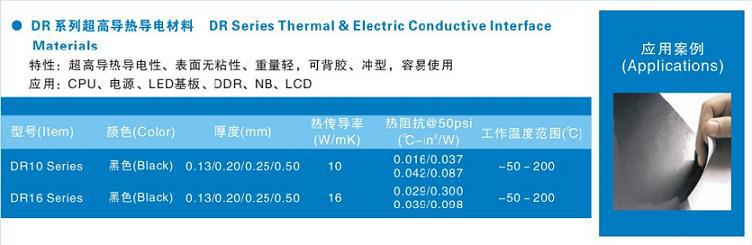 DR系列导电导热石墨片是一种高分子材料,经过高温石墨化处理制程,研制出均匀薄片状之高热传导石墨材料,其具有高热传导的特性,耐腐蚀并耐热最高可达200℃。