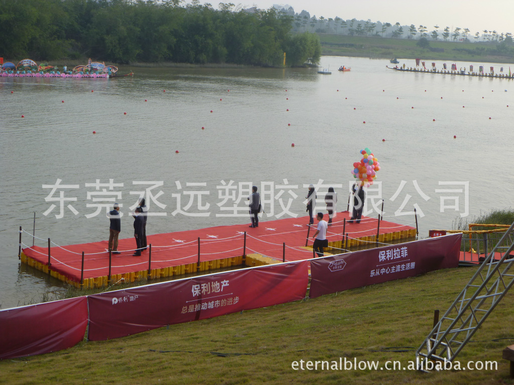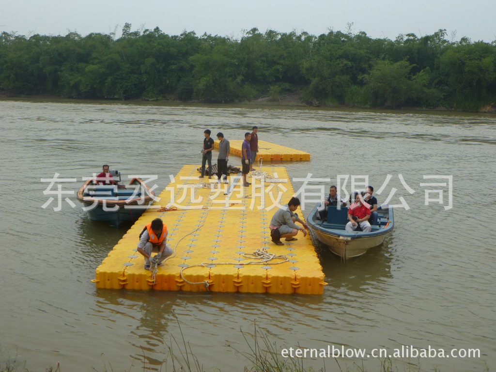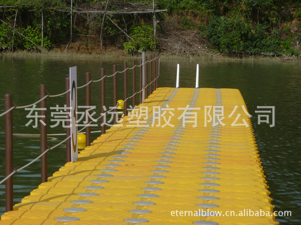 •安全稳固: ETERNAL-FLOAT表面特殊花纹设计,使人免于一般木制设施所常见的危险,例如:滑倒、被碎木屑、锈钉刺伤等,而且四角都为圆弧钝角设计,安全又稳固。 •高承载力:每平方公尺可承载360公斤的重量。 •多用途:可广泛地运用于各种水域。 •经济实惠:几乎不需任何保养维修费用。 •强耐性:防紫外线、防冻,抗海水、化学药剂、油渍等之侵蚀。 •机动可变性:一个连接栓可支撑四个浮筒;以此扩充,可依需要而变化,组合成任何尺寸和任何结构之设施。 |