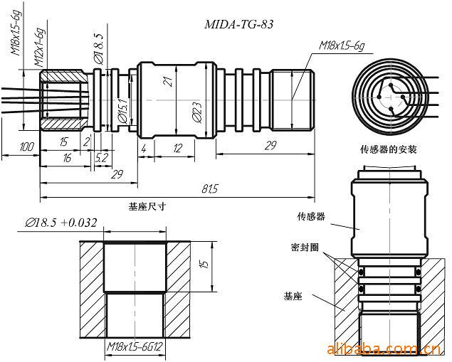 | 使用范围 | 供油田深井压力测量及设备配套专用 | | 工作介质 | 对钛合金不发生腐蚀性作用的液体及气体 | | 量程 MPa | 0-2.5; 0-4; 0-6; 0-10; 0-16; 0-25; 0-40; 0-60;0-100;0-160 | | 基本相对误差(非线性、迟滞和重复性),±%FS | 0.1 | | 工作温度范围,℃ | -40-+150;+50~+150 | | 温度补偿范围,℃ | -25~+150;+50~+150 | | 温度补偿时的热漂移,不超过,% | 零点 | 2 | | 灵敏度 | 2 | | 零点,±1mV | 0.2±0.2 | | 电源电压,VDC | 额定10;最大15 | | 灵敏度,mV/V | 5.2±0.2(标定); 5-10 | | 防护等级 | IP65 | | 在20±5℃时的 输入和输出阻抗, kΩ | Rin ≥ 4 | Rout ≤ 5 | | 重量,不大于 kg | 0.12 | | | 机械稳定性 | G2 | | 接线方式 | 插接(P);电缆连接(C); | | 过程连接 | M18x1.5 |