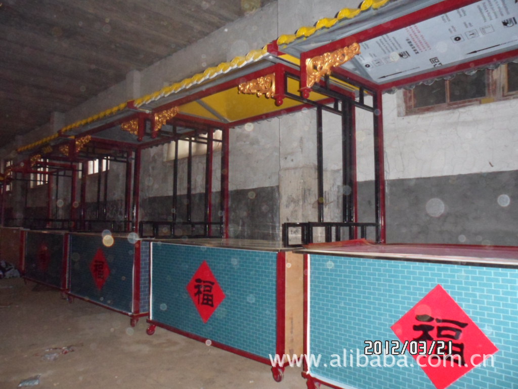 随着中国经济的发展,中国传统文化也日趋被公众推崇,复古风已经在中国刮起,我公司根据这一文化发展趋势,特意为大型商超设计了这一款仿古花车(柜台),其特点是结构美观,坚固耐用,方便移动,特别适合工艺品,地方土特产,传统小吃,熟食,食品现场加工等使用。能充分提升陈列物品的产品形象,且带来营业面积的有效利用,更为商场带来一道别致景观,提升企业的文化形象。