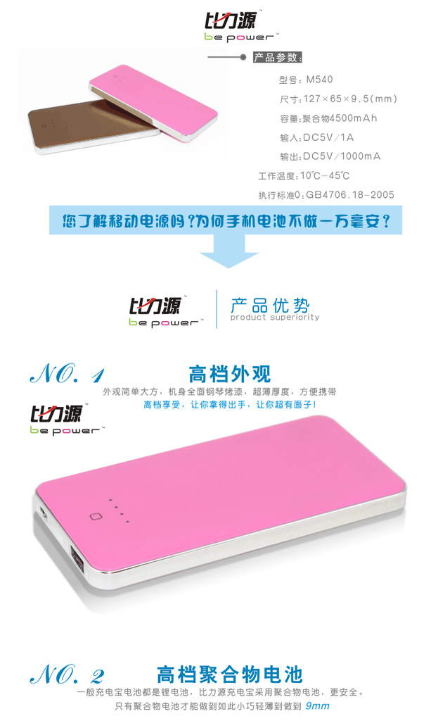 " Be power比力源 "是专业消费类电子生产企业——旭天集团旗下品牌。中国最具创新能力的高端时尚移动电源品牌。 自2001年成立以来,旭天集团一直致力于高品质移动电源、展示防盗、酒店数码产品及消费类电子等产品的设计、研发、生产和销售。依托强大的研发实力、卓越的品质保障、完善的售后服务及强势的营销网络,发展成为中国最具引响影力的移动电源制造商之一。