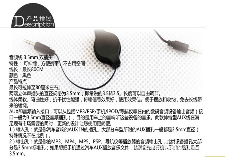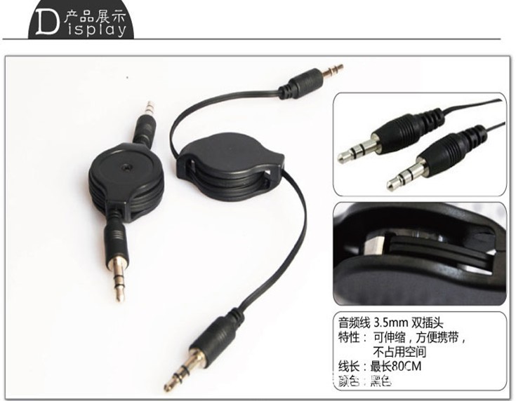 A53.5mm公对公音频线 伸缩式3.5对3.5对录线 AUX可伸缩对录线