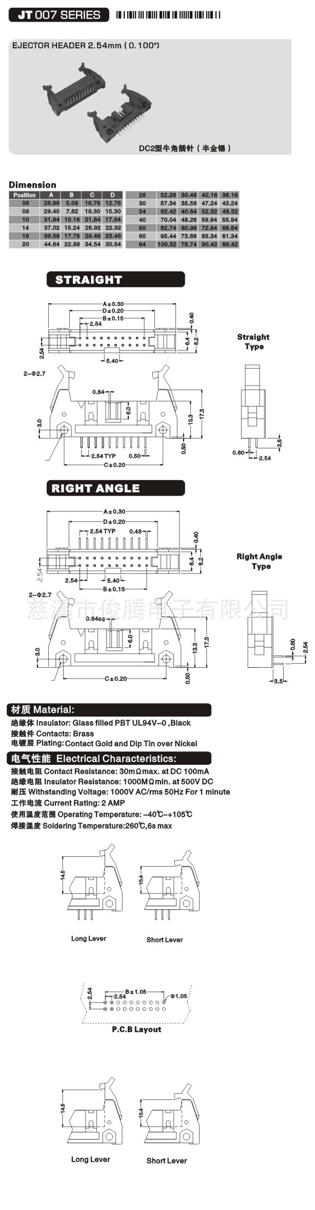 JT007 2.54DC2型牛角插针(半金锡)系列