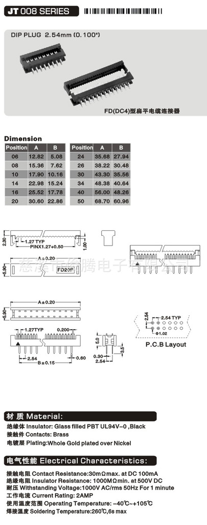 NBJT/JT008 2.54FD(DC4)型扁平电缆连接器系列